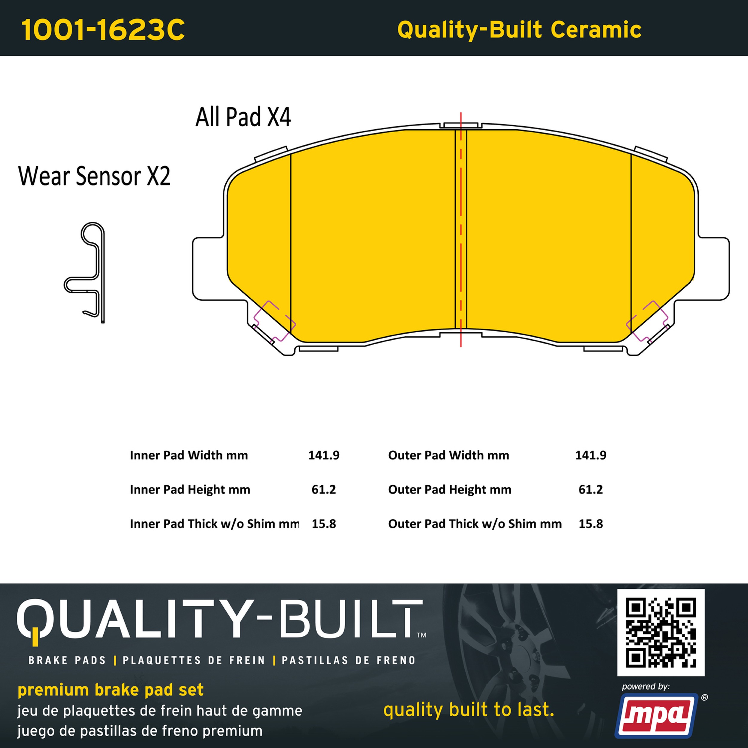 - Quality-Built Premium Ceramic Brake Pads w/ Hardware