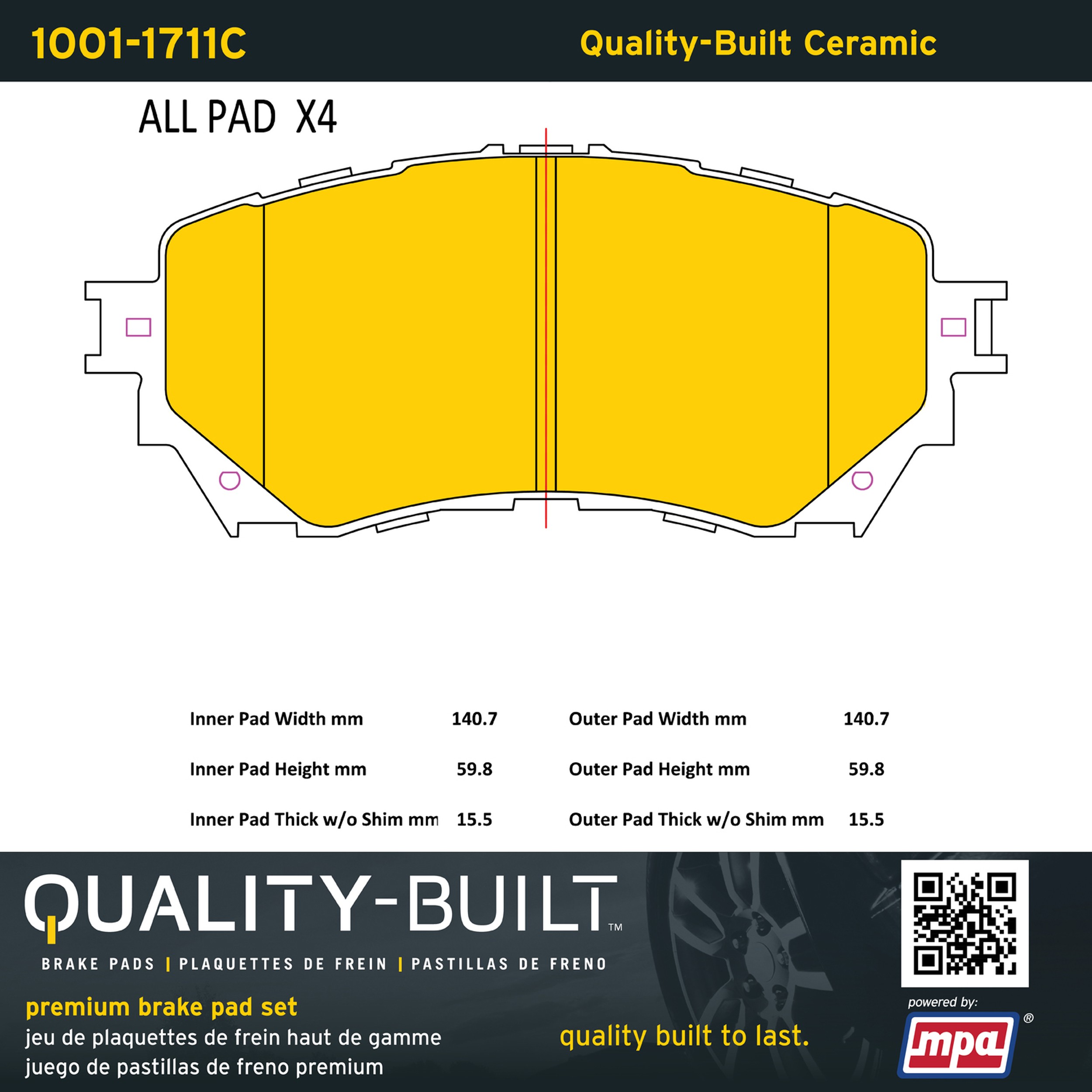 - Quality-Built Premium Ceramic Brake Pads w/ Hardware