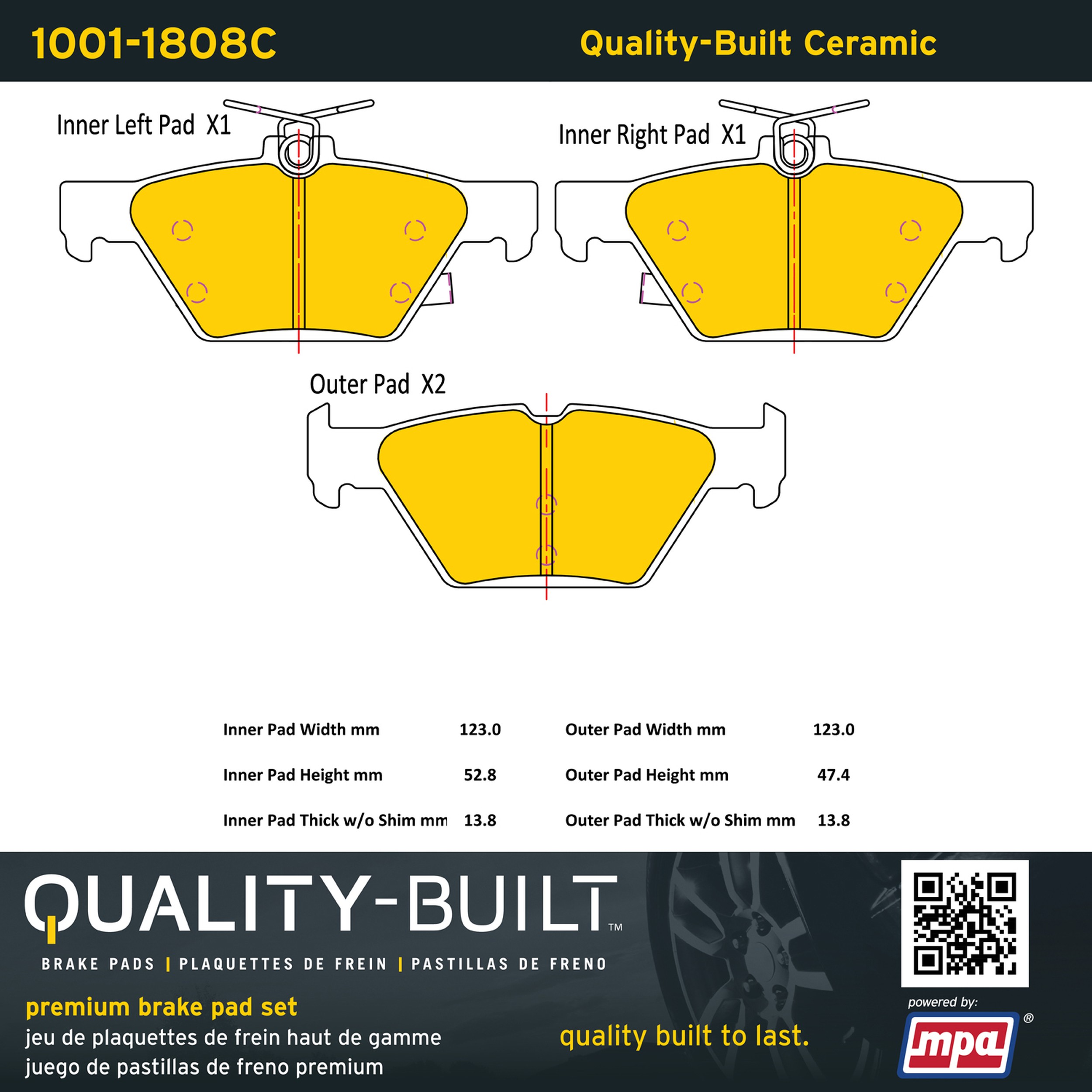- Quality-Built Premium Brake Pads provide optimized stopping power in all conditions. Application-specific pad formulas remove the guesswork from pad selection by providing friction compounds engineered to restore like-new stopping power for every vehicle. 2025 compliant, copper-free friction formulas deliver dependable performance across a wide thermal range with low brake dust and zero noise.