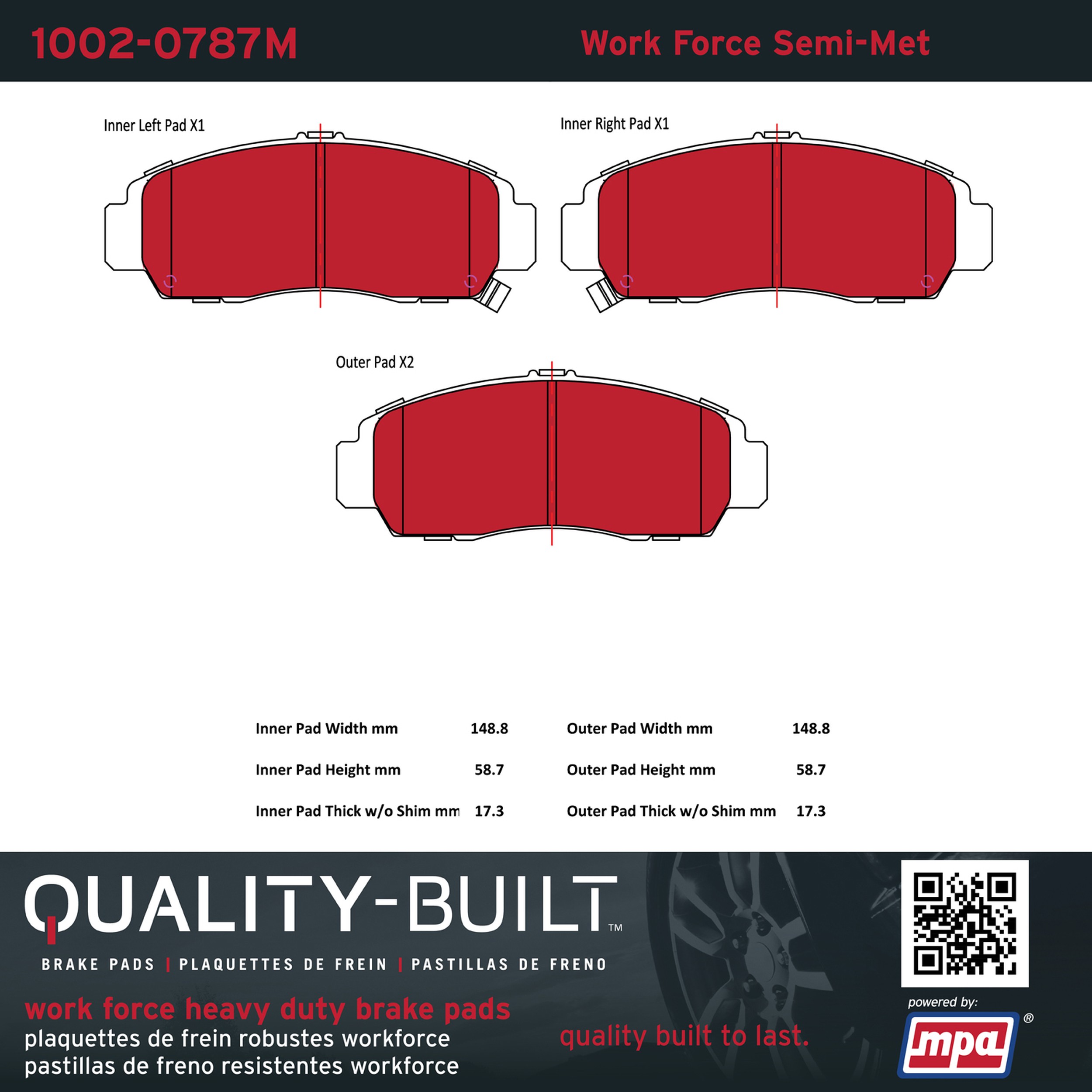 - Hardworking vehicles need hardworking brake pads, and Quality-Built Work force brake pads deliver every time. Specially formulated friction compounds are designed for high heat, heavy-duty use, where repeat stop situations, off-road driving, or towing push brake pads to the limits. Work force brake pads are an excellent choice for fleet use where extended service life and maximum durability are required.