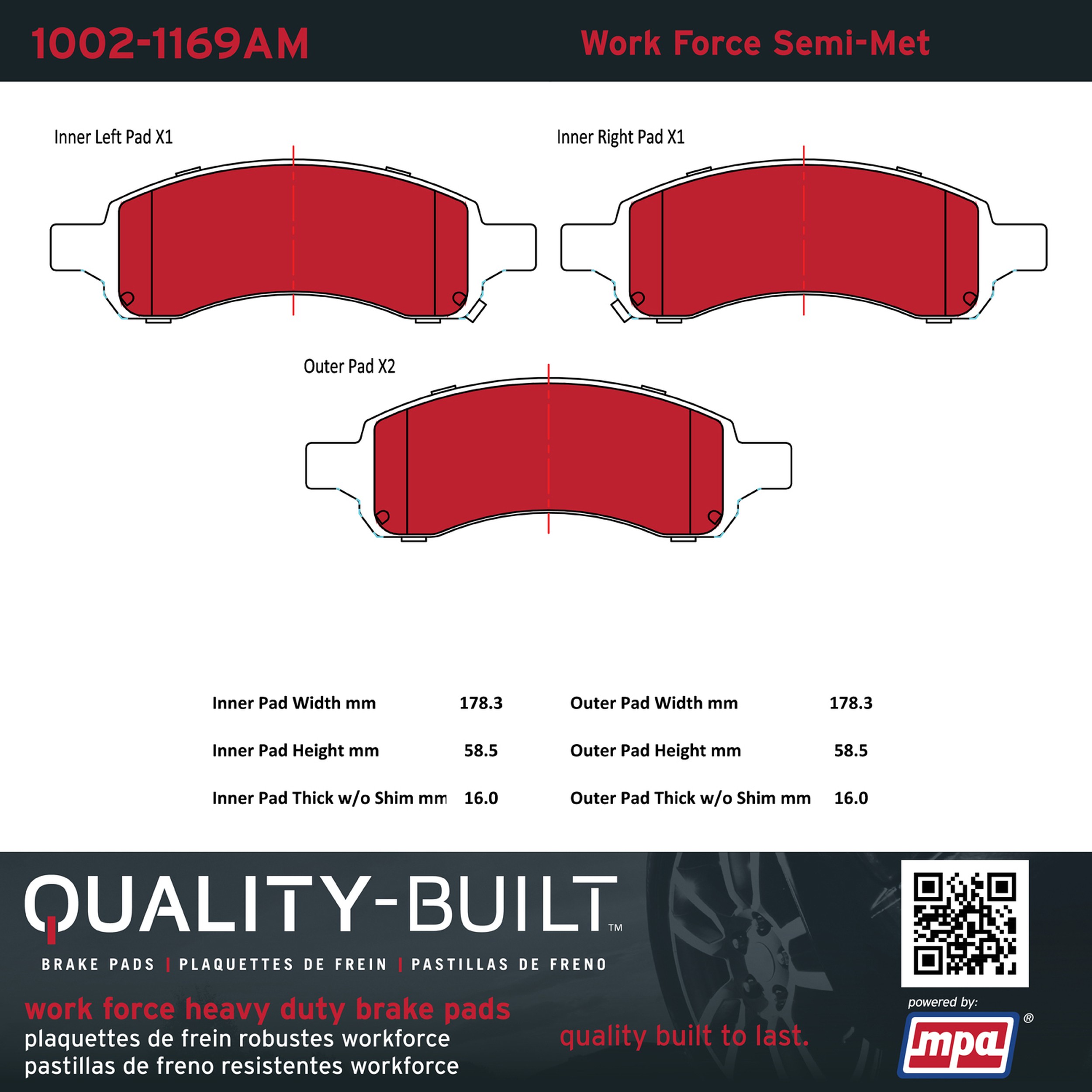 - Hardworking vehicles need hardworking brake pads, and Quality-Built Work force brake pads deliver every time. Specially formulated friction compounds are designed for high heat, heavy-duty use, where repeat stop situations, off-road driving, or towing push brake pads to the limits. Work force brake pads are an excellent choice for fleet use where extended service life and maximum durability are required.