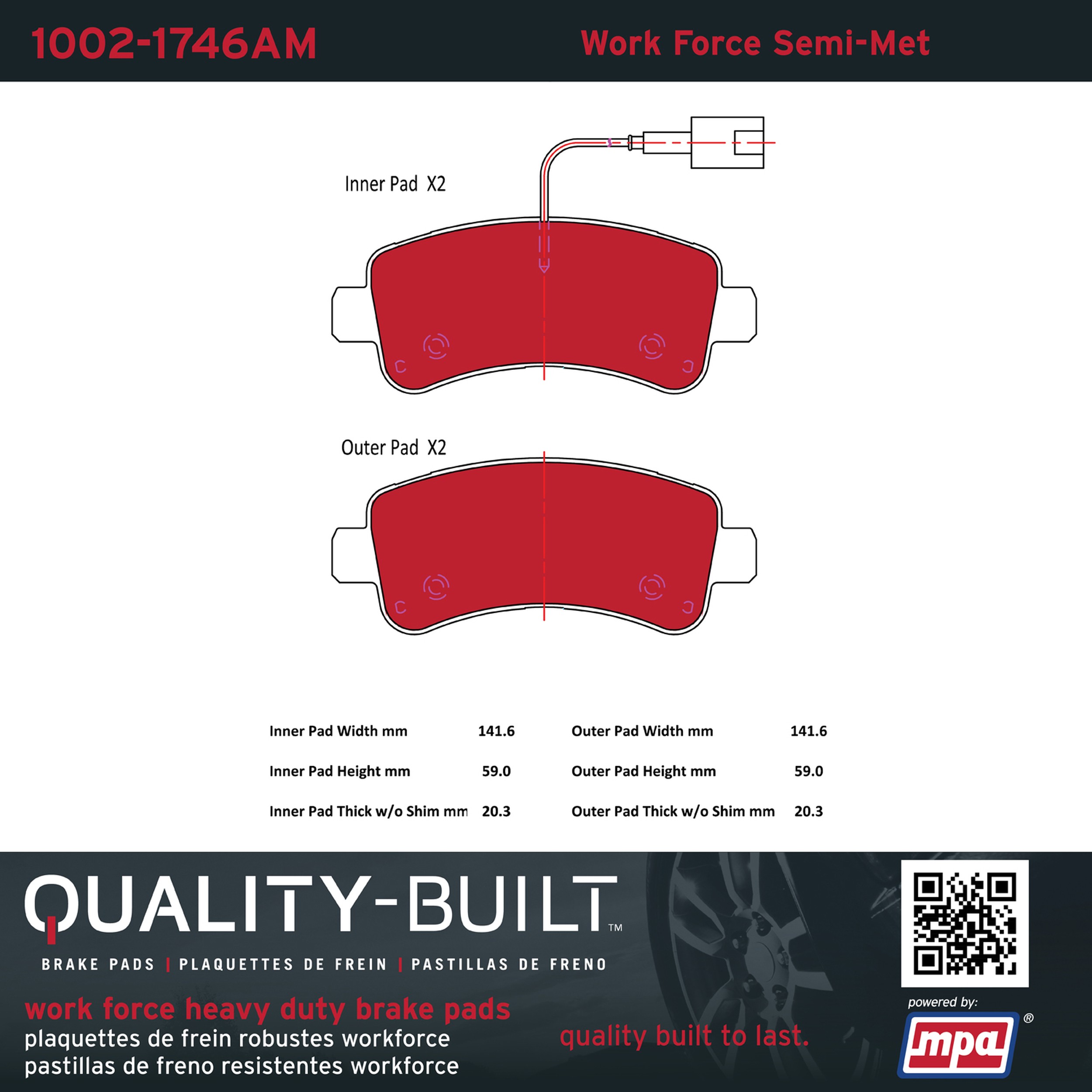 - Hardworking vehicles need hardworking brake pads, and Quality-Built Work force brake pads deliver every time. Specially formulated friction compounds are designed for high heat, heavy-duty use, where repeat stop situations, off-road driving, or towing push brake pads to the limits. Work force brake pads are an excellent choice for fleet use where extended service life and maximum durability are required.