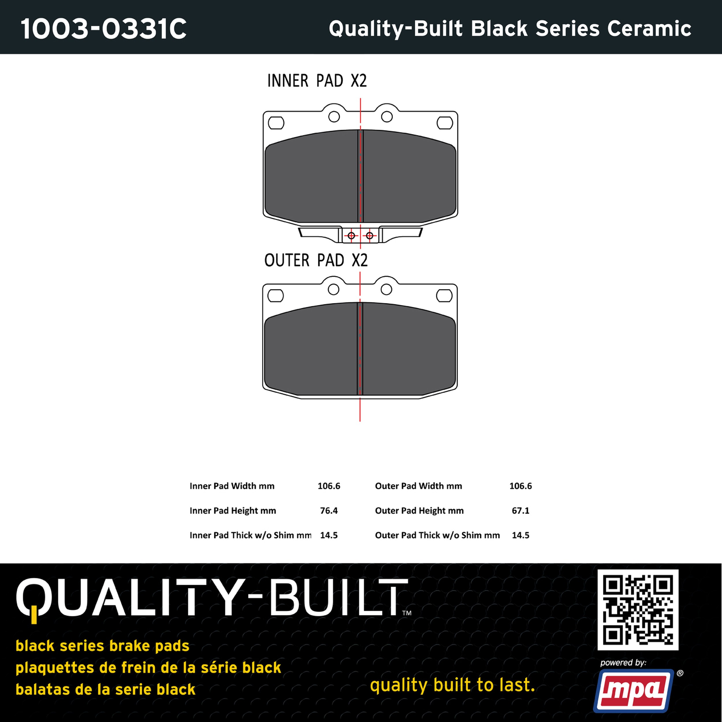 - Quality-Built Black Series Ceramic Brake Pads