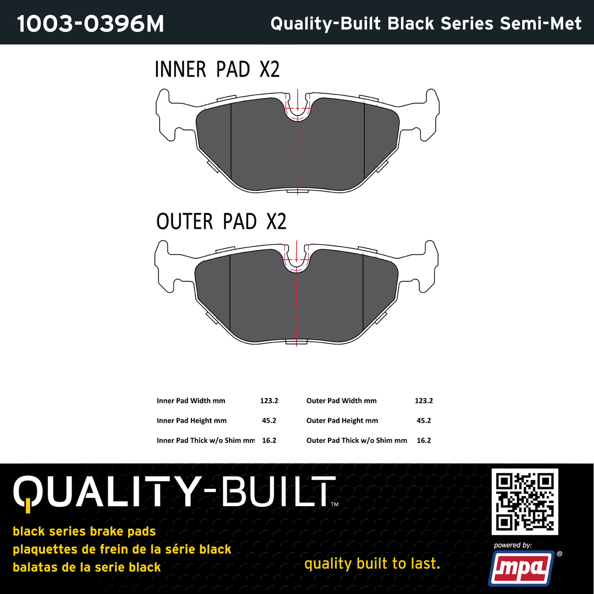 - Quality-Built Black Series Brake Pads are the ultimate in brake pad performance, delivering smooth, reliable stopping with zero noise and low dust. Application-specific friction formulas take the guesswork out of pad selection while providing even, predictable pedal feel and fade-free stopping power across a wide thermal range. Black Series friction compounds are engineered for optimized brake system performance and improved stopping power.