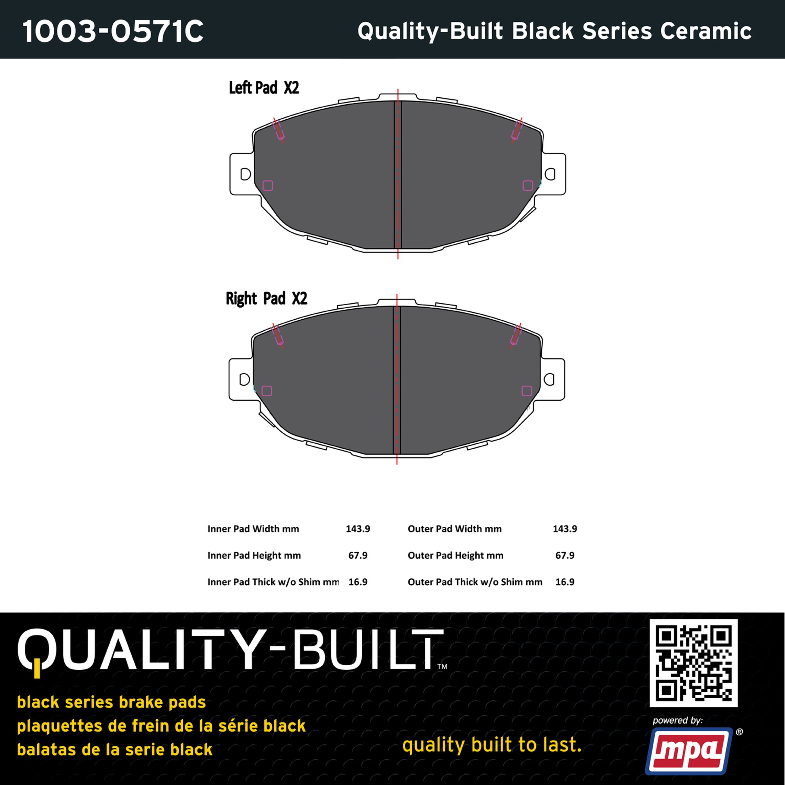 - Quality-Built Black Series Brake Pads are the ultimate in brake pad performance, delivering smooth, reliable stopping with zero noise and low dust. Application-specific friction formulas take the guesswork out of pad selection while providing even, predictable pedal feel and fade-free stopping power across a wide thermal range. Black Series friction compounds are engineered for optimized brake system performance and improved stopping power.