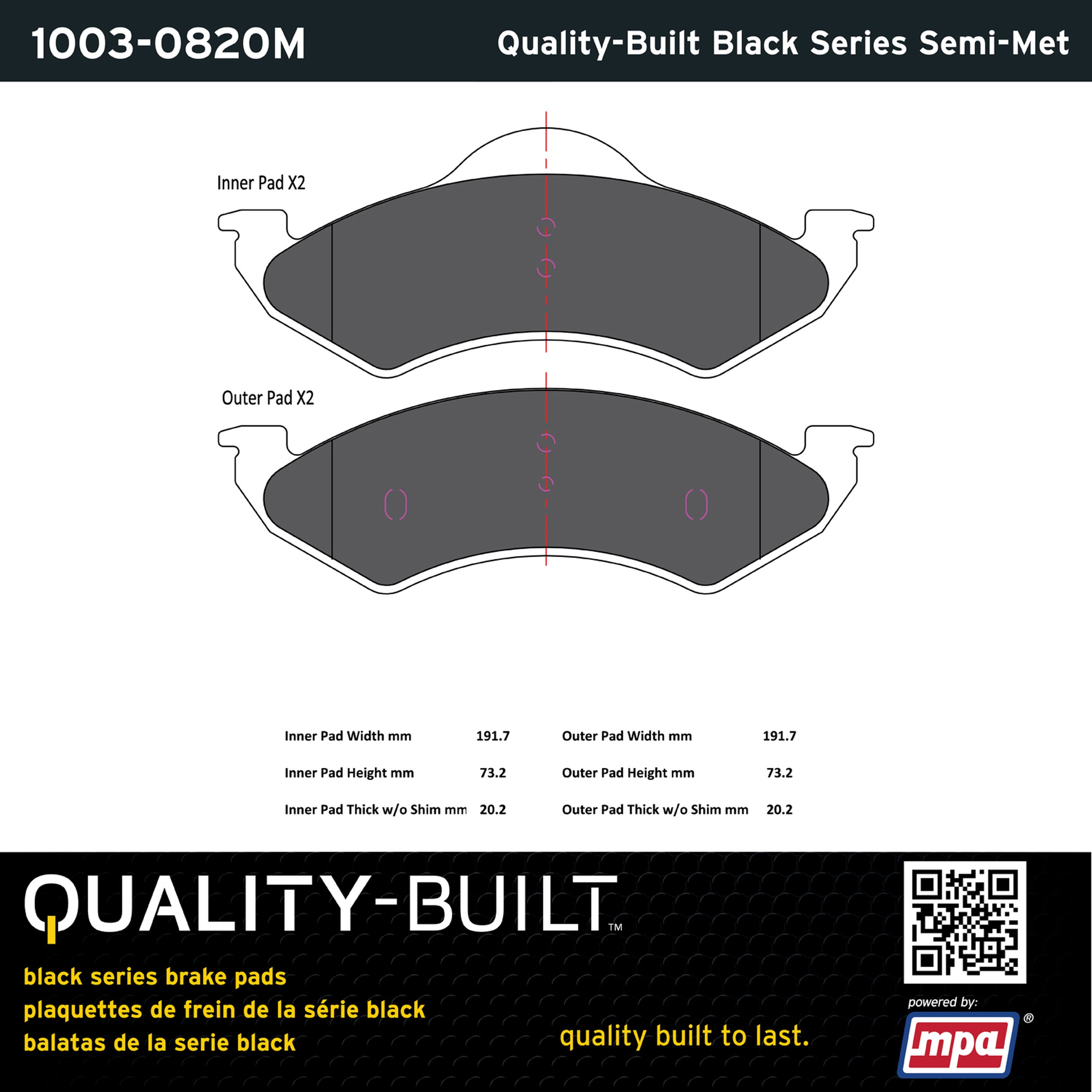 - Quality-Built Black Series Brake Pads are the ultimate in brake pad performance, delivering smooth, reliable stopping with zero noise and low dust. Application-specific friction formulas take the guesswork out of pad selection while providing even, predictable pedal feel and fade-free stopping power across a wide thermal range. Black Series friction compounds are engineered for optimized brake system performance and improved stopping power.