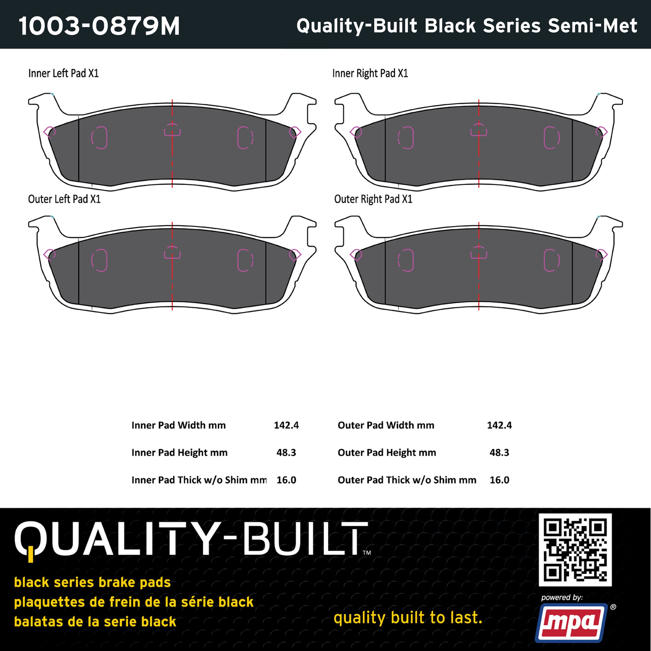 - Quality-Built Black Series Brake Pads are the ultimate in brake pad performance, delivering smooth, reliable stopping with zero noise and low dust. Application-specific friction formulas take the guesswork out of pad selection while providing even, predictable pedal feel and fade-free stopping power across a wide thermal range. Black Series friction compounds are engineered for optimized brake system performance and improved stopping power.
