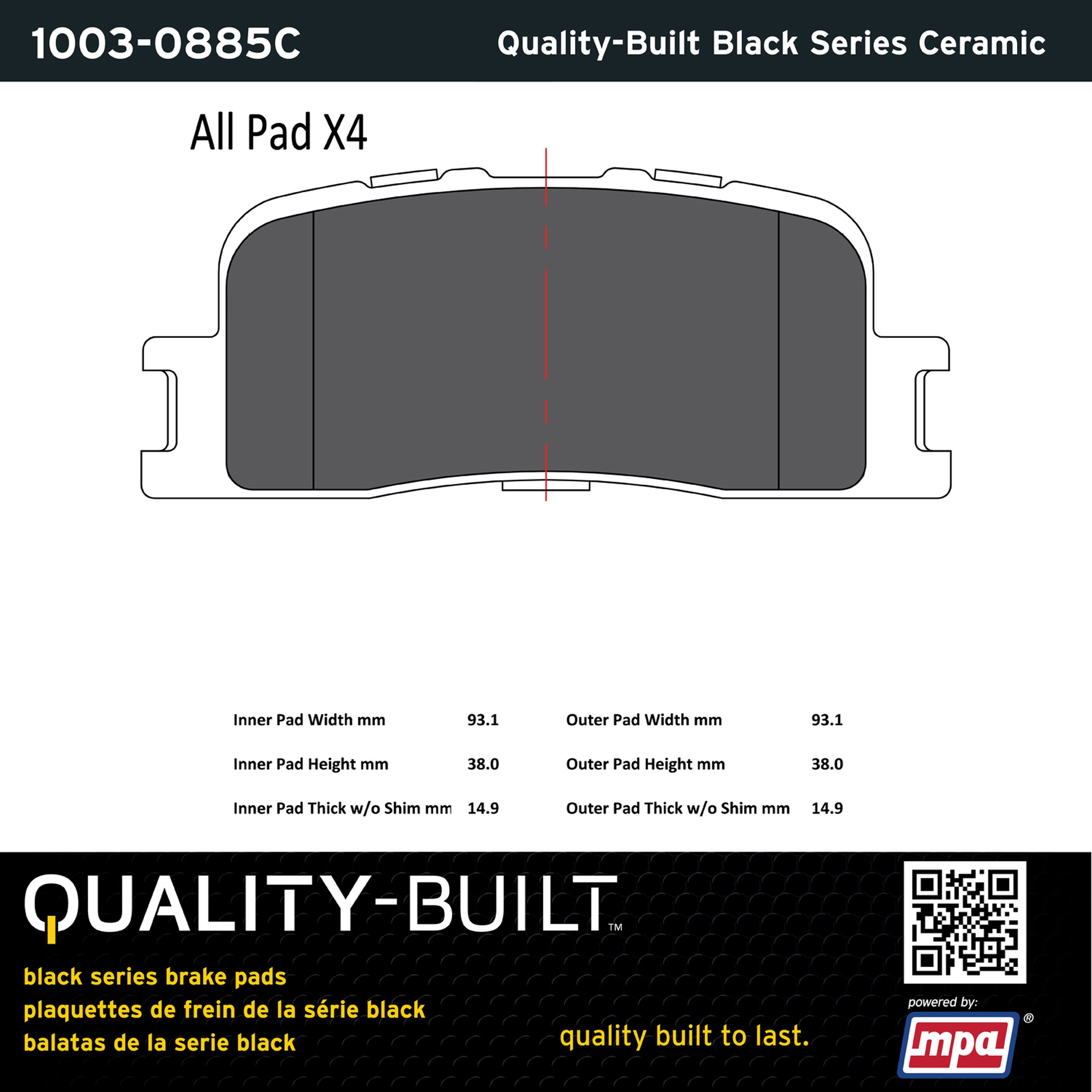- Quality-Built Black Series Brake Pads are the ultimate in brake pad performance, delivering smooth, reliable stopping with zero noise and low dust. Application-specific friction formulas take the guesswork out of pad selection while providing even, predictable pedal feel and fade-free stopping power across a wide thermal range. Black Series friction compounds are engineered for optimized brake system performance and improved stopping power.