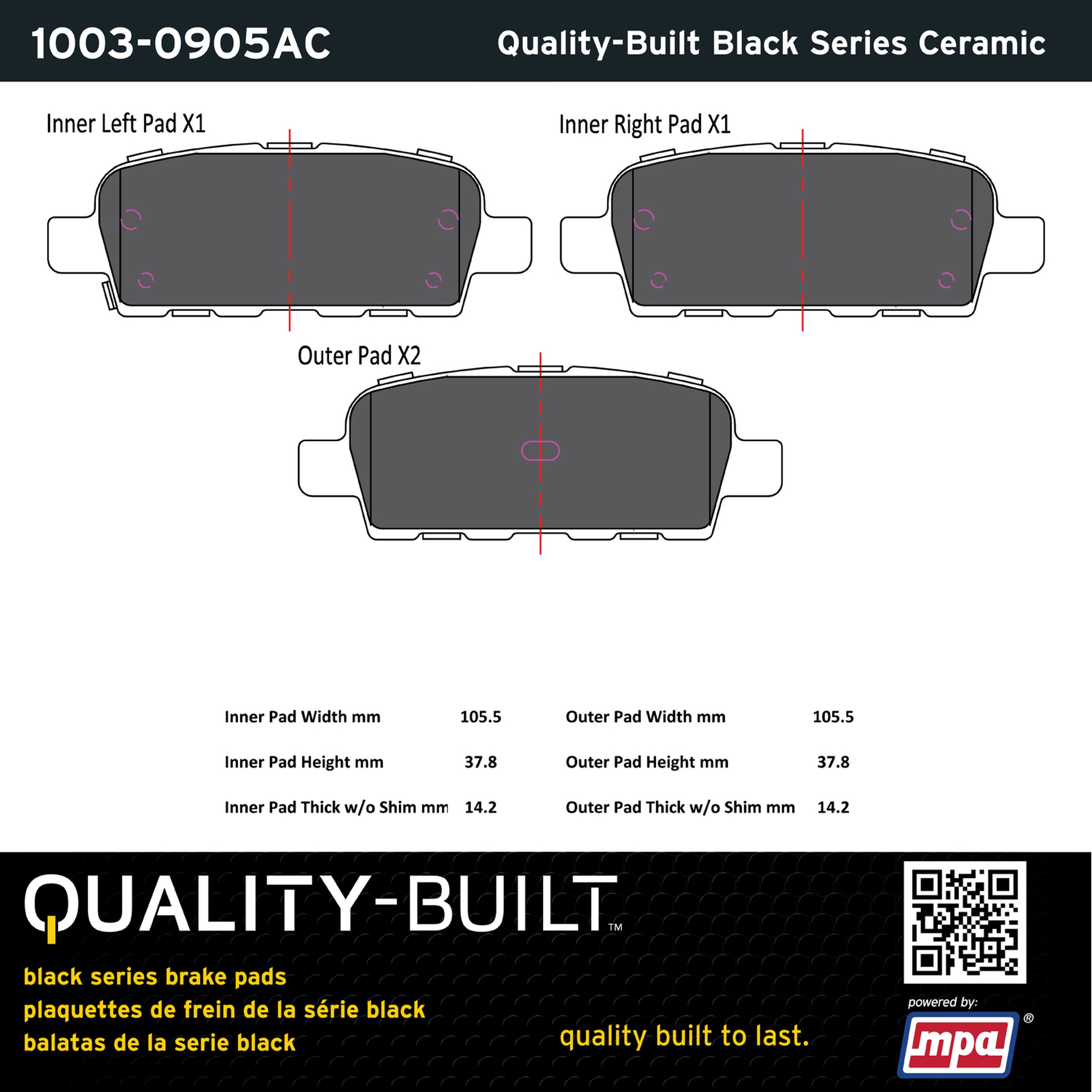 - Quality-Built Black Series Brake Pads are the ultimate in brake pad performance, delivering smooth, reliable stopping with zero noise and low dust. Application-specific friction formulas take the guesswork out of pad selection while providing even, predictable pedal feel and fade-free stopping power across a wide thermal range. Black Series friction compounds are engineered for optimized brake system performance and improved stopping power.