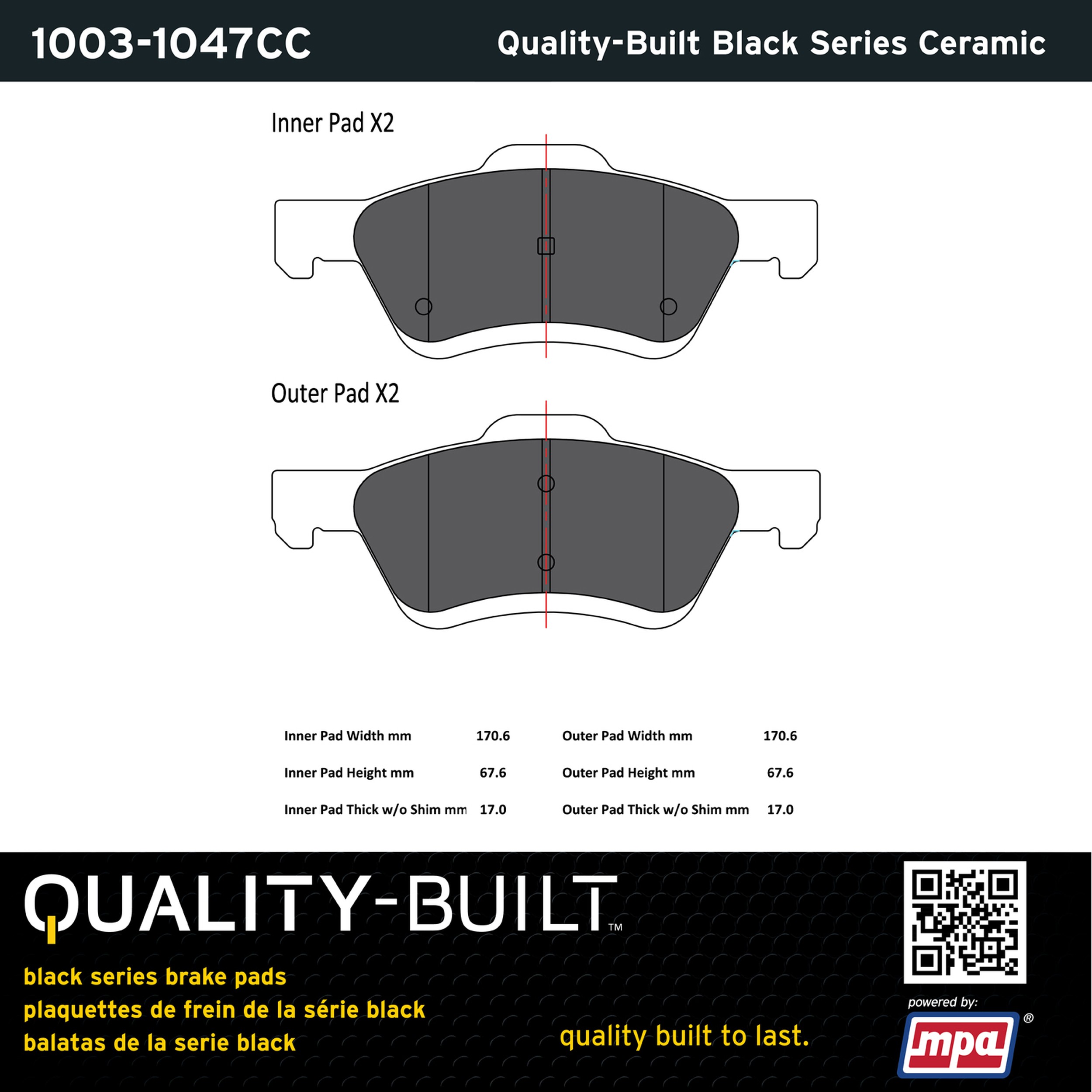 - Quality-Built Black Series Brake Pads are the ultimate in brake pad performance, delivering smooth, reliable stopping with zero noise and low dust. Application-specific friction formulas take the guesswork out of pad selection while providing even, predictable pedal feel and fade-free stopping power across a wide thermal range. Black Series friction compounds are engineered for optimized brake system performance and improved stopping power.