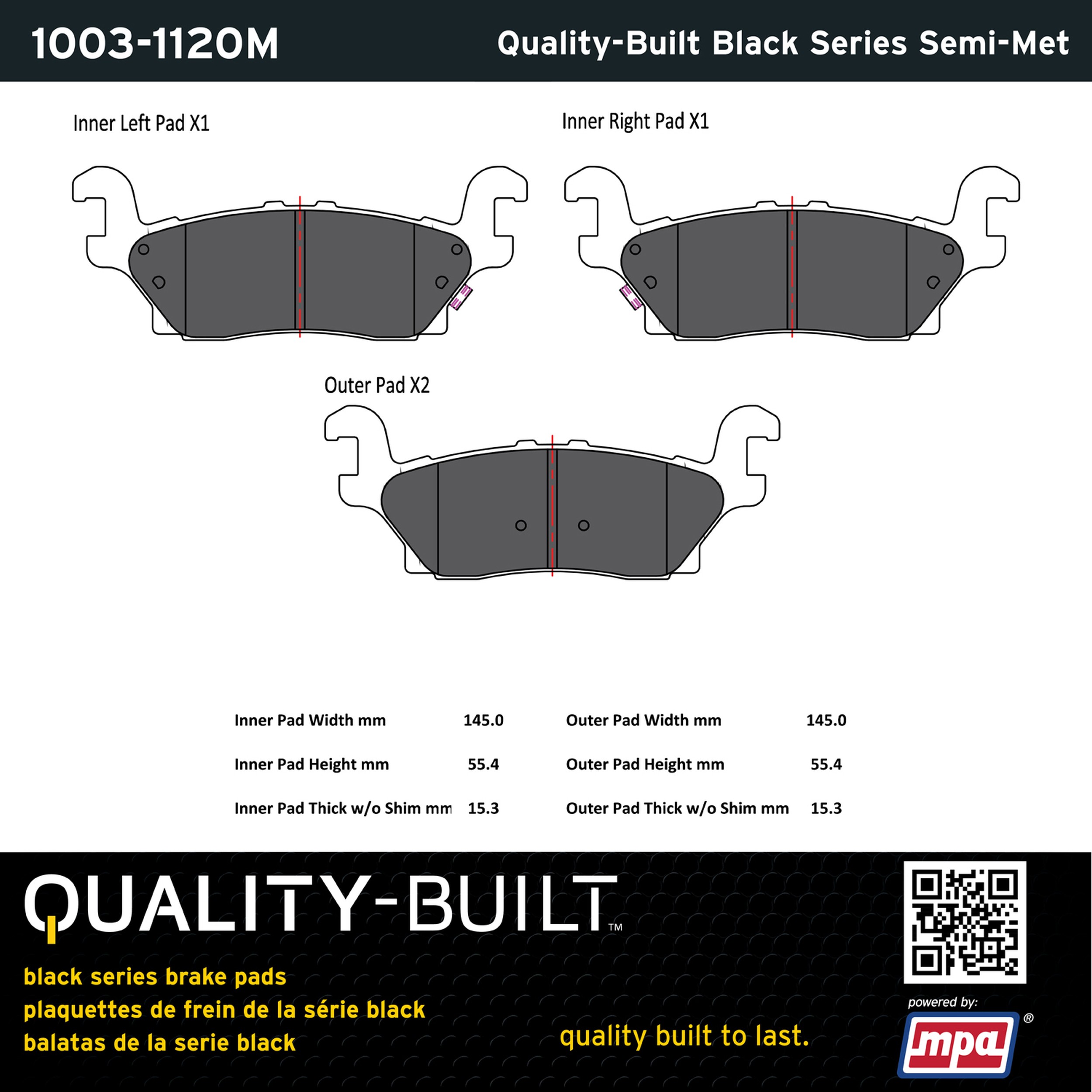 - Quality-Built Black Series Brake Pads are the ultimate in brake pad performance, delivering smooth, reliable stopping with zero noise and low dust. Application-specific friction formulas take the guesswork out of pad selection while providing even, predictable pedal feel and fade-free stopping power across a wide thermal range. Black Series friction compounds are engineered for optimized brake system performance and improved stopping power.
