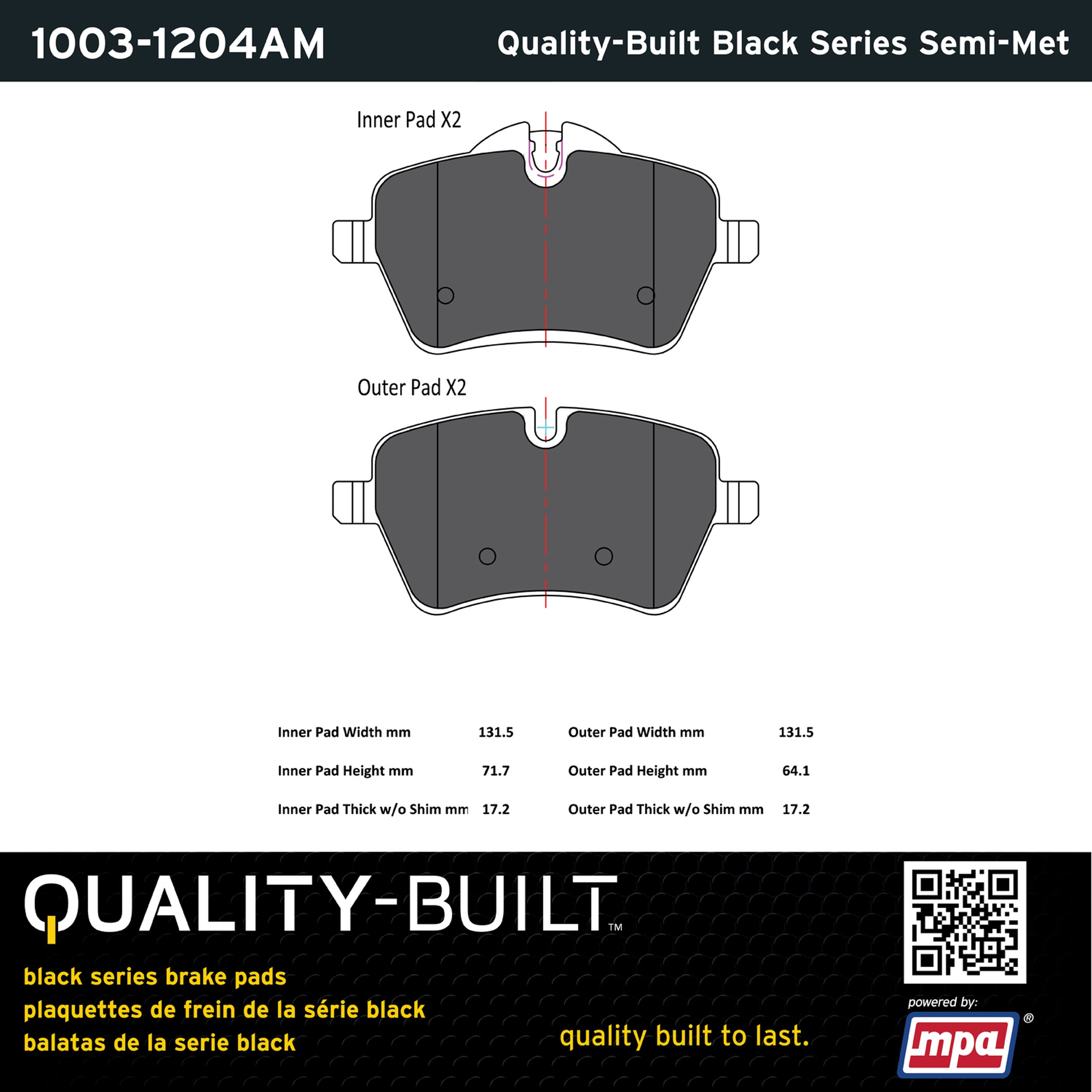 - Quality-Built Black Series Brake Pads are the ultimate in brake pad performance, delivering smooth, reliable stopping with zero noise and low dust. Application-specific friction formulas take the guesswork out of pad selection while providing even, predictable pedal feel and fade-free stopping power across a wide thermal range. Black Series friction compounds are engineered for optimized brake system performance and improved stopping power.