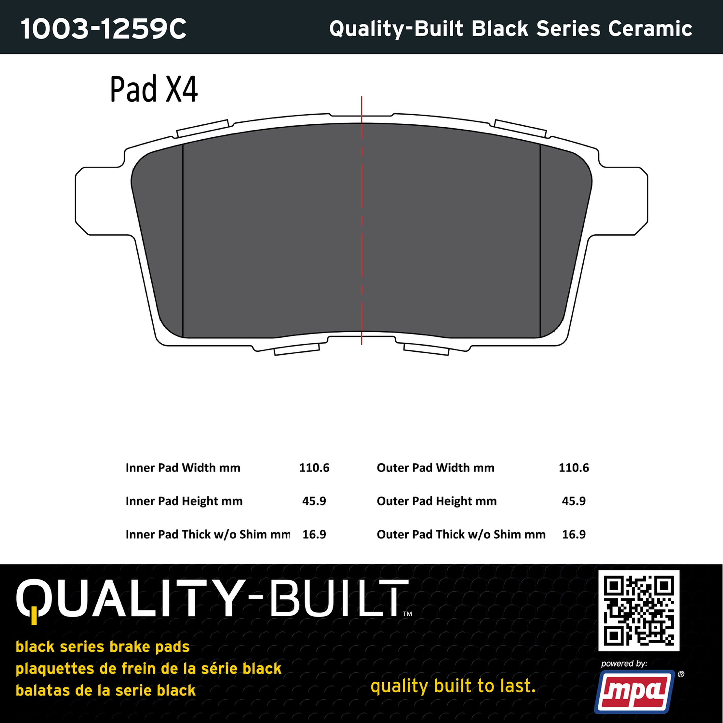 - Quality-Built Black Series Brake Pads are the ultimate in brake pad performance, delivering smooth, reliable stopping with zero noise and low dust. Application-specific friction formulas take the guesswork out of pad selection while providing even, predictable pedal feel and fade-free stopping power across a wide thermal range. Black Series friction compounds are engineered for optimized brake system performance and improved stopping power.