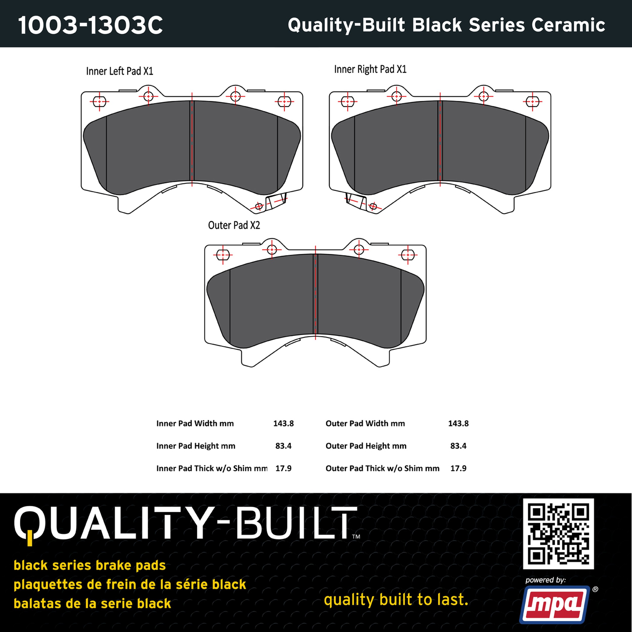 - Quality-Built Black Series Brake Pads are the ultimate in brake pad performance, delivering smooth, reliable stopping with zero noise and low dust. Application-specific friction formulas take the guesswork out of pad selection while providing even, predictable pedal feel and fade-free stopping power across a wide thermal range. Black Series friction compounds are engineered for optimized brake system performance and improved stopping power.