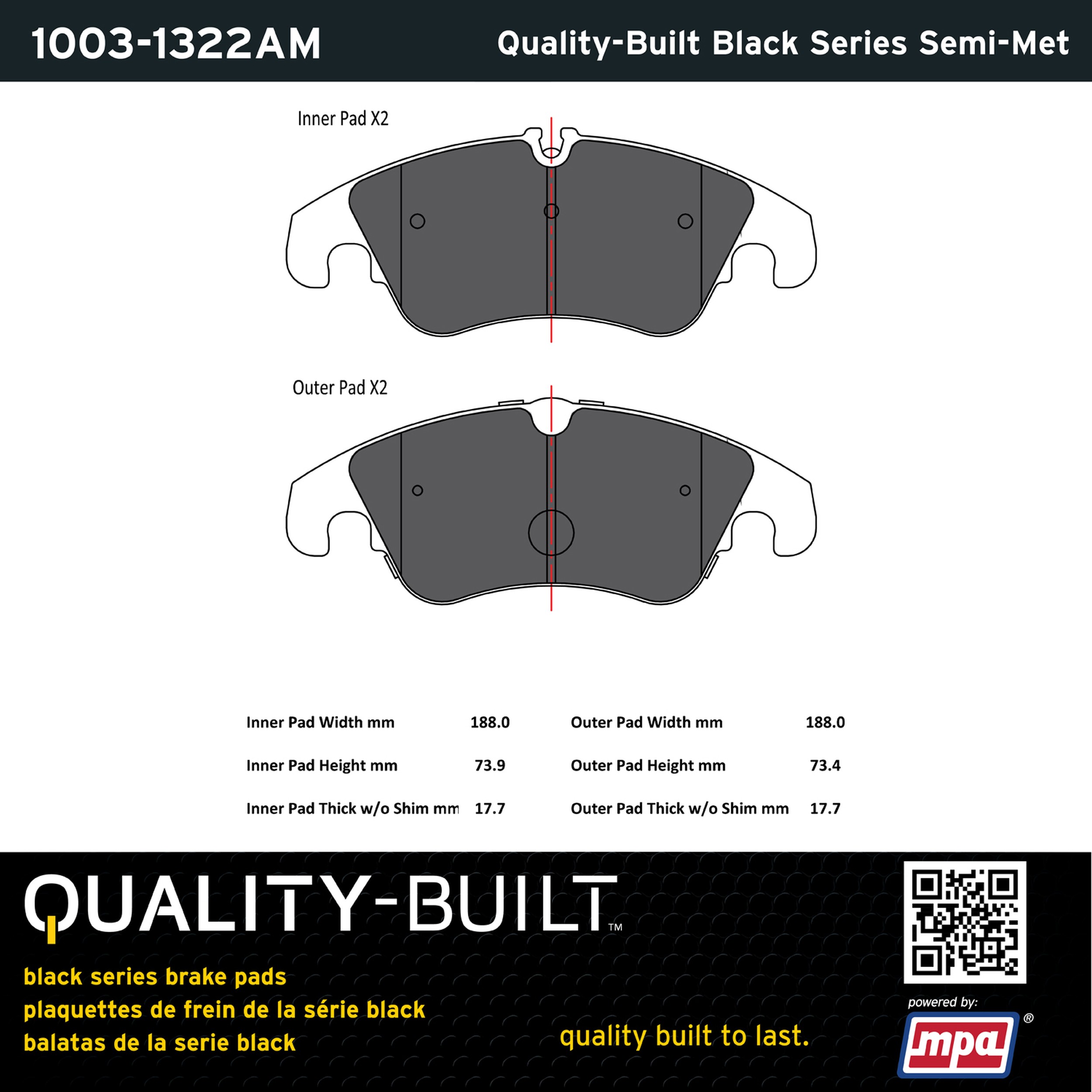 - Quality-Built Black Series Brake Pads are the ultimate in brake pad performance, delivering smooth, reliable stopping with zero noise and low dust. Application-specific friction formulas take the guesswork out of pad selection while providing even, predictable pedal feel and fade-free stopping power across a wide thermal range. Black Series friction compounds are engineered for optimized brake system performance and improved stopping power.