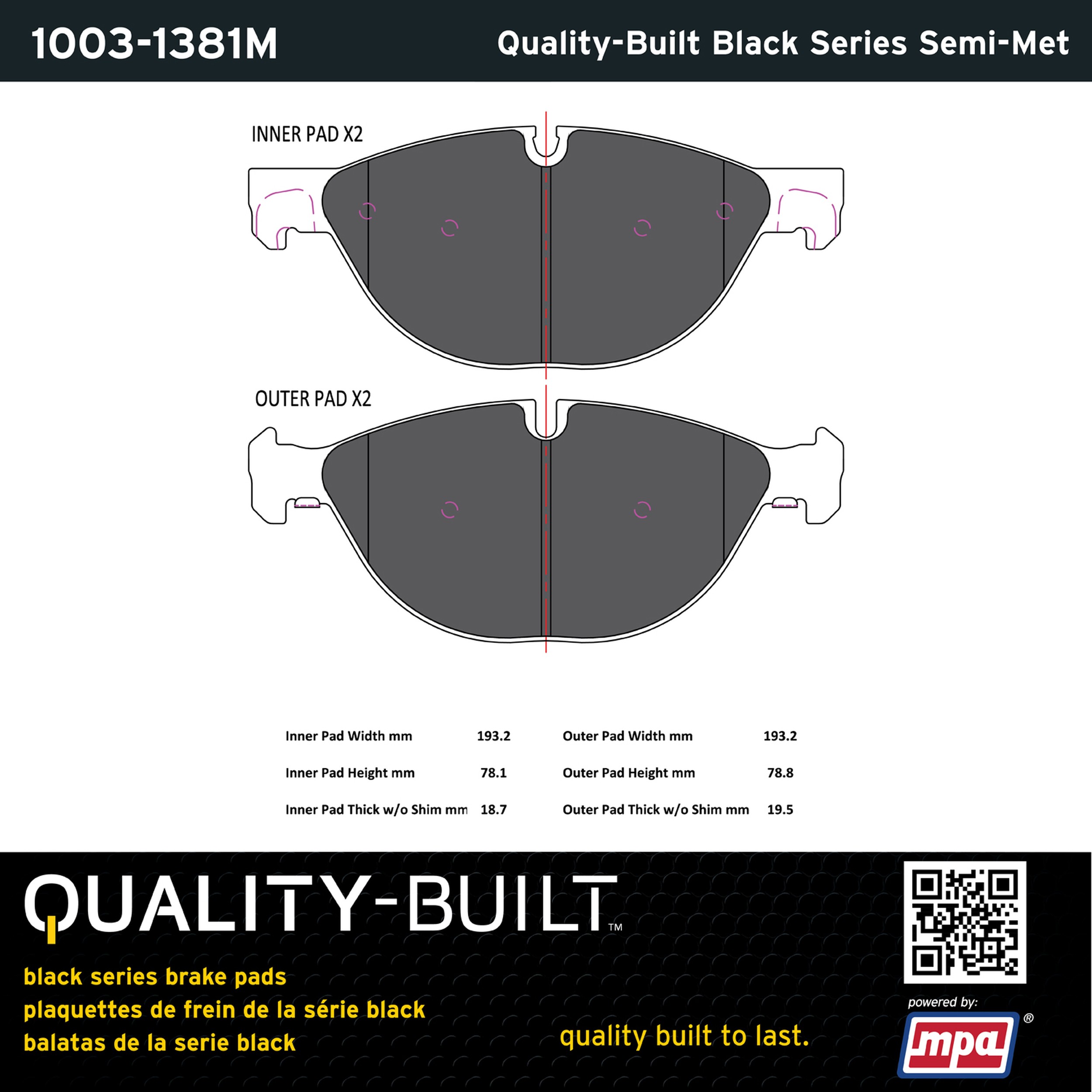 - Quality-Built Black Series Semi-Metallic Brake Pads