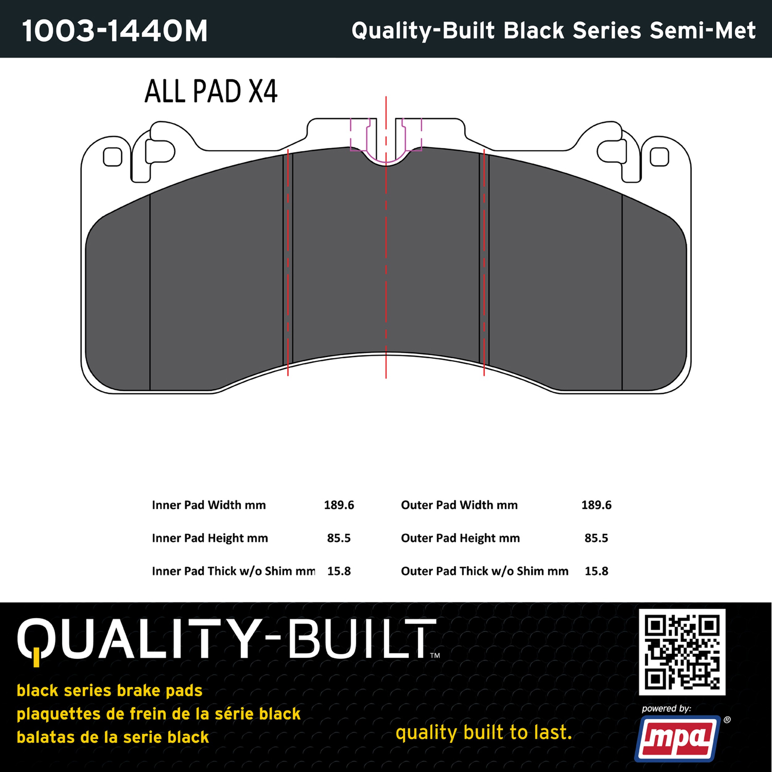 - Quality-Built Black Series Brake Pads are the ultimate in brake pad performance, delivering smooth, reliable stopping with zero noise and low dust. Application-specific friction formulas take the guesswork out of pad selection while providing even, predictable pedal feel and fade-free stopping power across a wide thermal range. Black Series friction compounds are engineered for optimized brake system performance and improved stopping power.