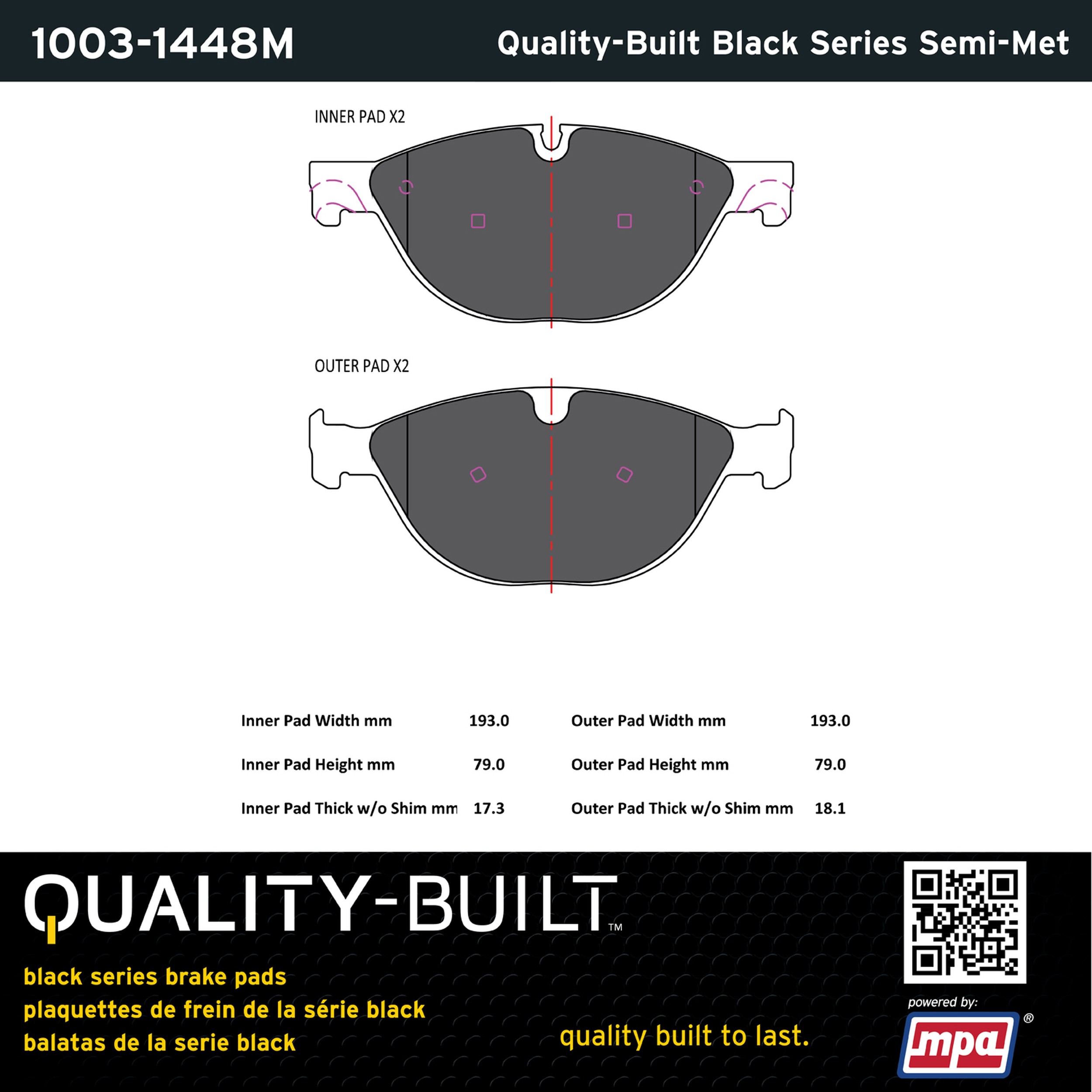 - Quality-Built Black Series Semi-Metallic Brake Pads