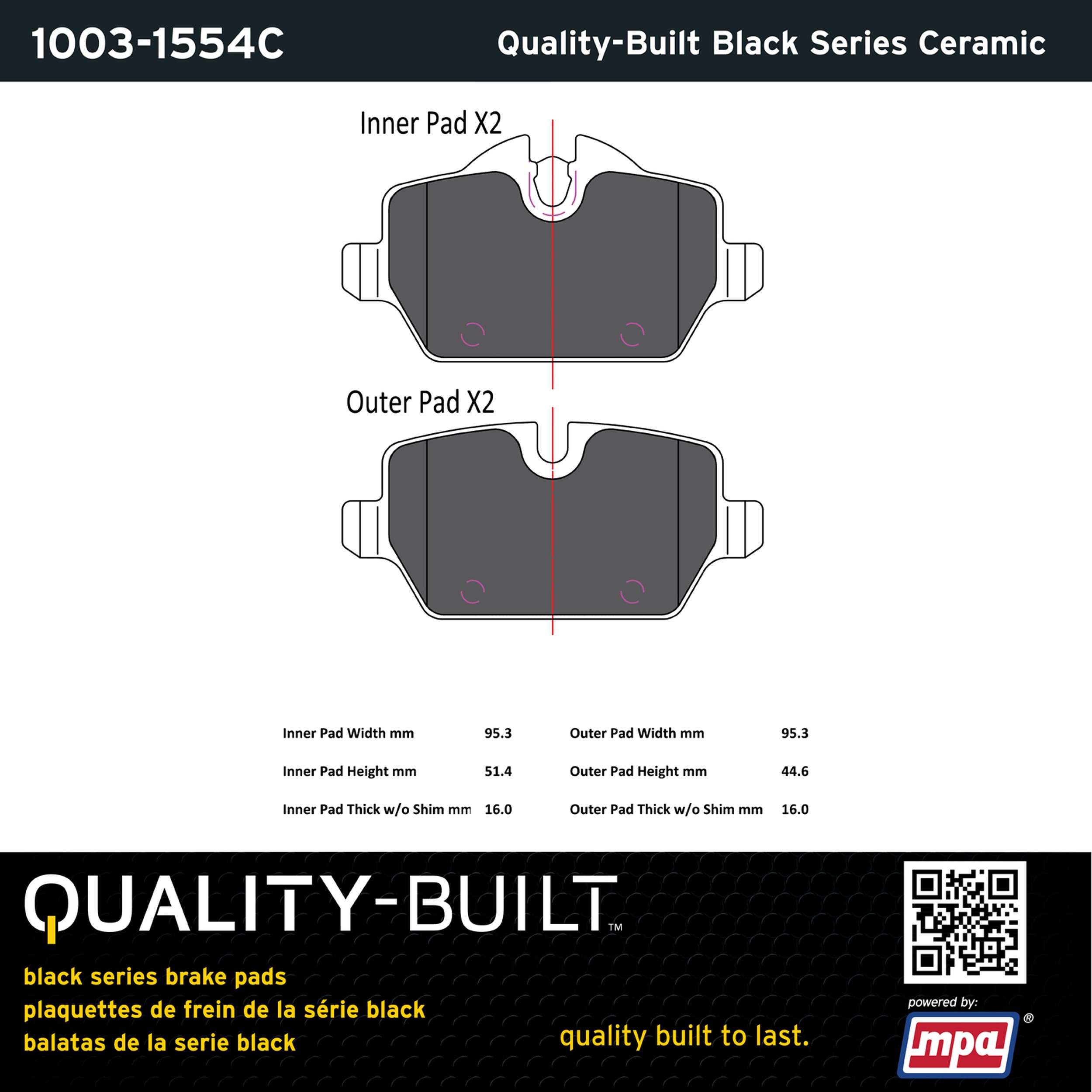 - Quality-Built Black Series Brake Pads are the ultimate in brake pad performance, delivering smooth, reliable stopping with zero noise and low dust. Application-specific friction formulas take the guesswork out of pad selection while providing even, predictable pedal feel and fade-free stopping power across a wide thermal range. Black Series friction compounds are engineered for optimized brake system performance and improved stopping power.