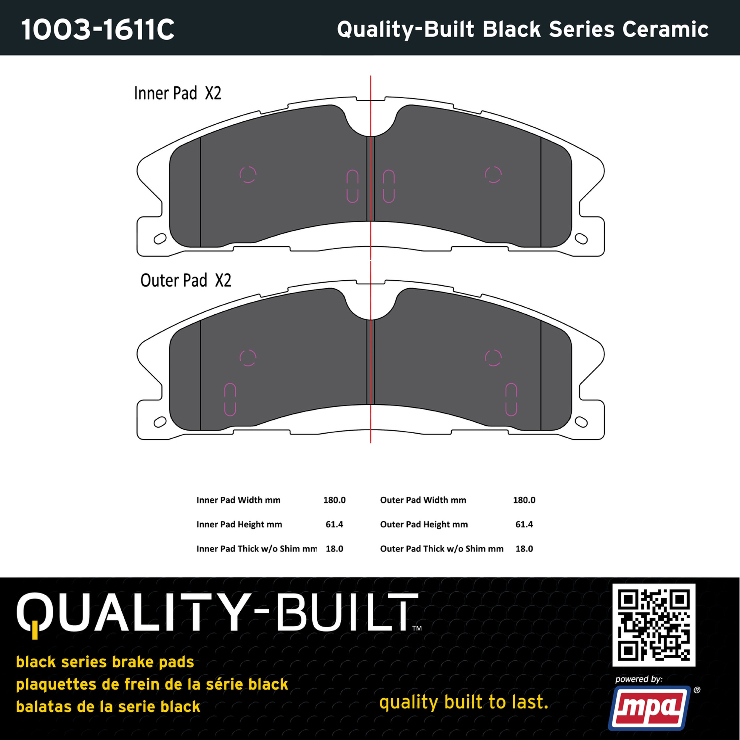 - Quality-Built Black Series Brake Pads are the ultimate in brake pad performance, delivering smooth, reliable stopping with zero noise and low dust. Application-specific friction formulas take the guesswork out of pad selection while providing even, predictable pedal feel and fade-free stopping power across a wide thermal range. Black Series friction compounds are engineered for optimized brake system performance and improved stopping power.