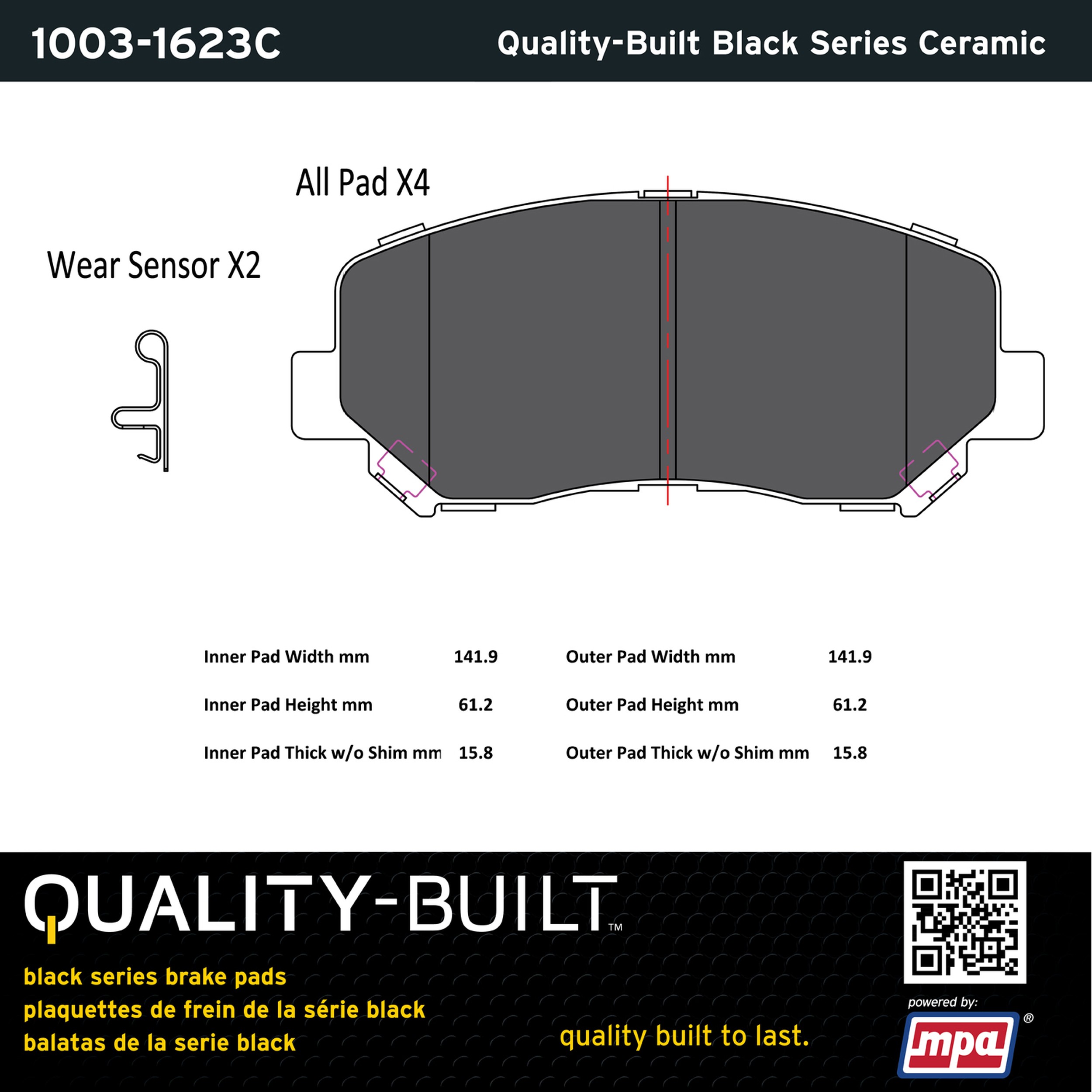 - Quality-Built Black Series Brake Pads are the ultimate in brake pad performance, delivering smooth, reliable stopping with zero noise and low dust. Application-specific friction formulas take the guesswork out of pad selection while providing even, predictable pedal feel and fade-free stopping power across a wide thermal range. Black Series friction compounds are engineered for optimized brake system performance and improved stopping power.