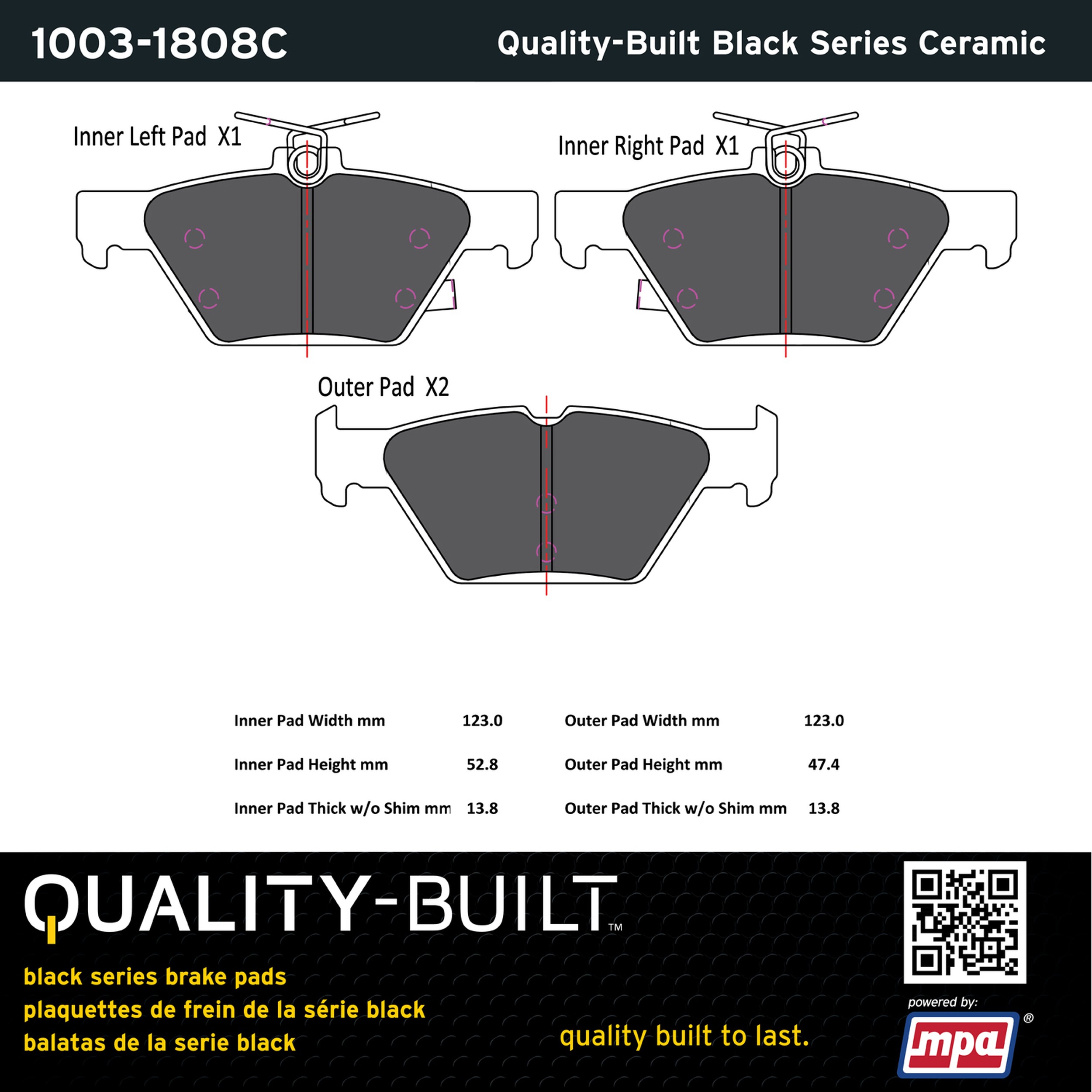 - Quality-Built Black Series Brake Pads are the ultimate in brake pad performance, delivering smooth, reliable stopping with zero noise and low dust. Application-specific friction formulas take the guesswork out of pad selection while providing even, predictable pedal feel and fade-free stopping power across a wide thermal range. Black Series friction compounds are engineered for optimized brake system performance and improved stopping power.
