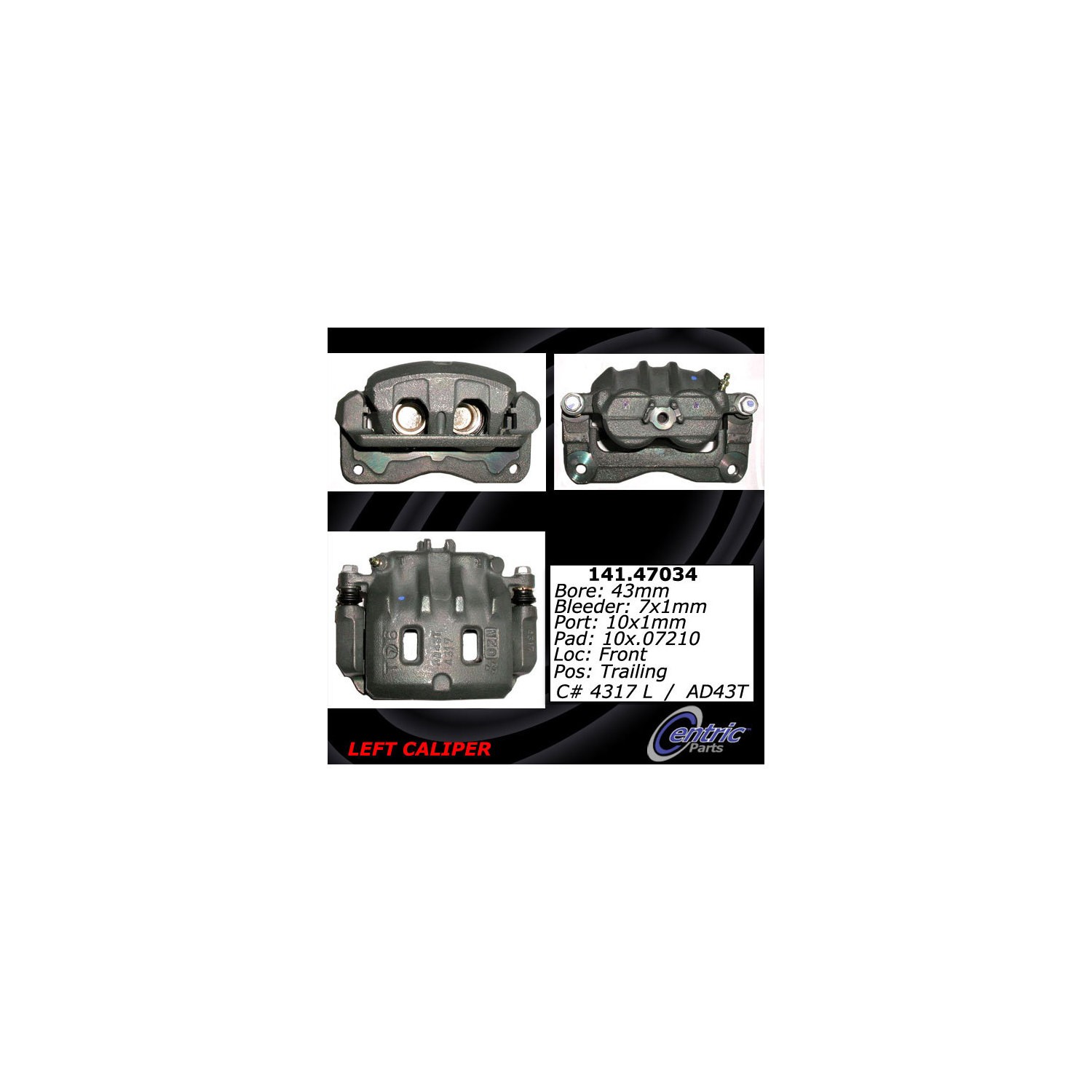 - Brake calipers are critical parts of the brake assembly. This Centric caliper is remanufactured to ensure predictable and reliable performance while providing long service life. To achieve like new condition and protection from rust, the part is tumble blasted then treated with an anti-corrosion finish. The caliper is 100% pressure tested and inspected to guarantee proper operation and fitment. Hardware and brackets are included, where applicable, to facilitate an easy installation. Founded in Southern California in 2000, Centric® achieved recognition for its aftermarket and brake components systems worldwide. Today the company is a leading manufacturer and supplier of brakes, big brake kits, high performance brakes, calipers, discs, rotors, pads, racing brakes, fluid, aftermarket brakes, armored vehicle brake upgrades, big brake kits (BBKs), OEM brake systems for everyday cars, heavy-duty vehicles, and high performance cars. All Centric products are known under the StopTech, C-Tek, Centric, and PosiQuiet labels and backed by quality research and development.