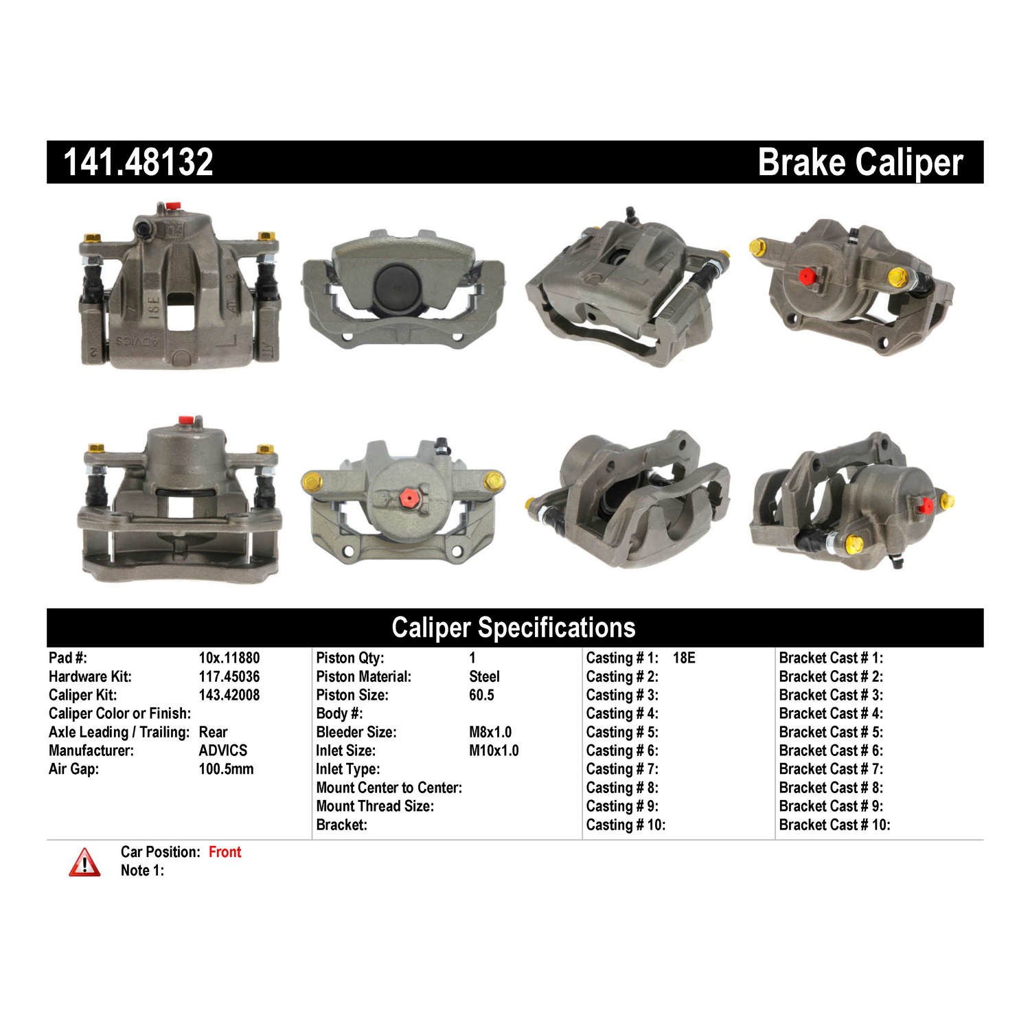 - Remanufactured to meet the most exacting standards for reliable performance; 100% pressure tested & inspected to ensure proper operation & fitment; Treated with anti-corrosion finish; Comes without brake pads; Includes hardware and brackets