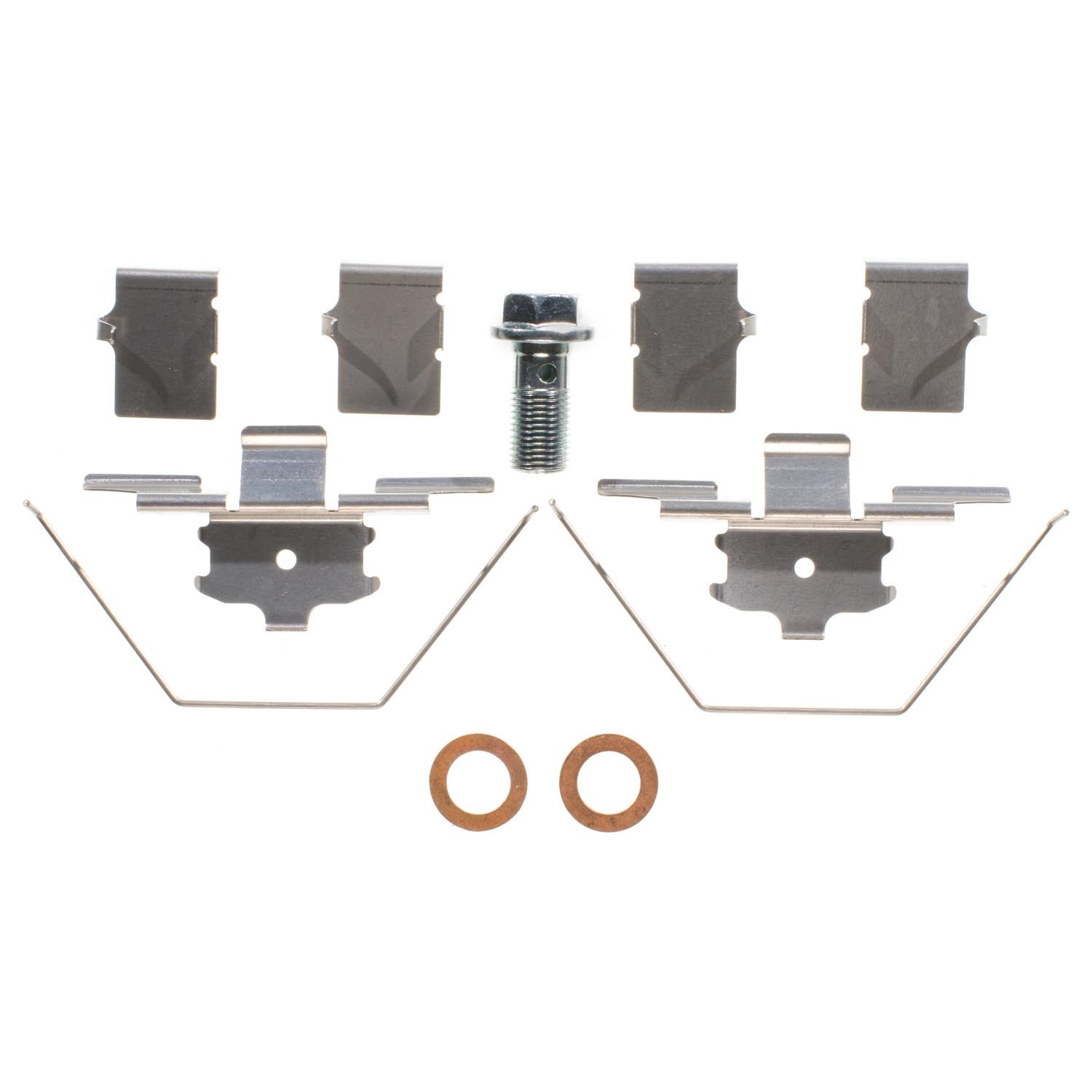 - New seals, caliper guide pins, dust boots, bleeder screws, stainless steel brake pad attachment hardware and mounting brackets.