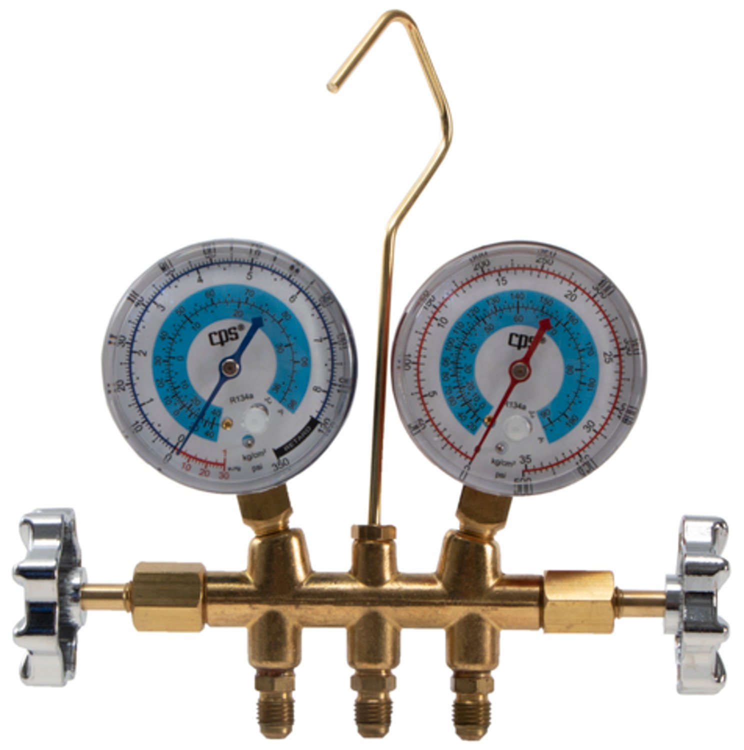 | Description | R134a brass fahrenheit manifold gauge set w/ coupler |