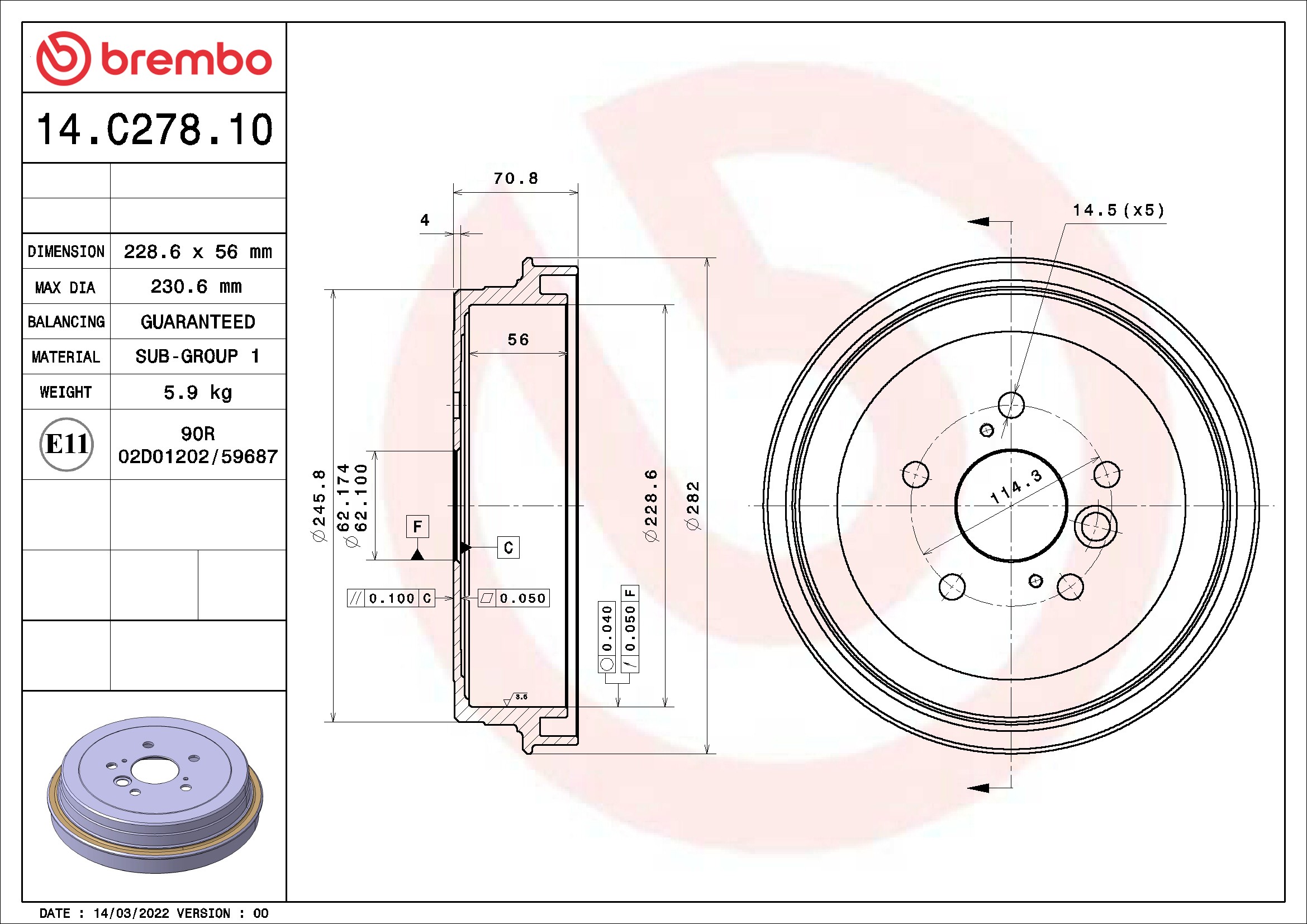 Brembo® 14.C278.10 Brake Drum