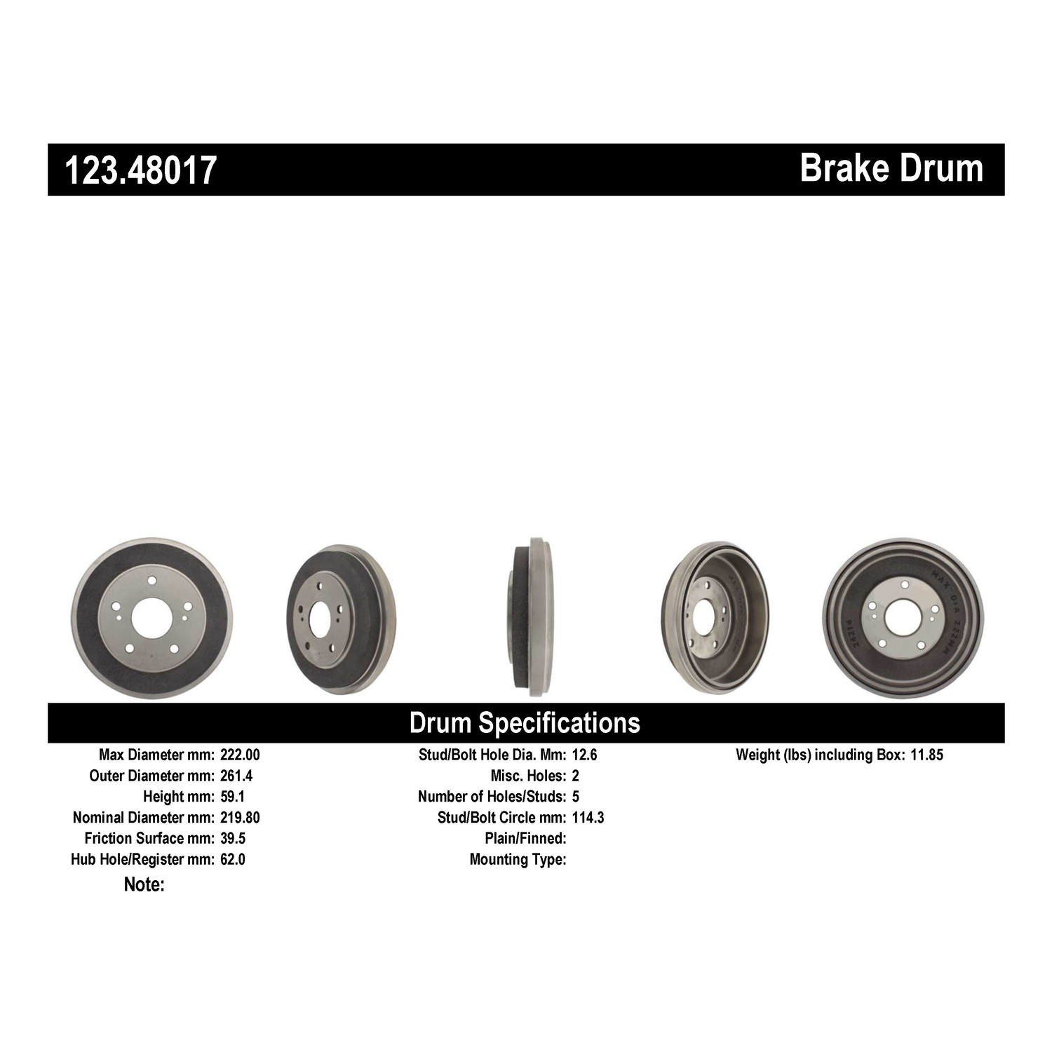 Centric® 123.48017 Brake Drum