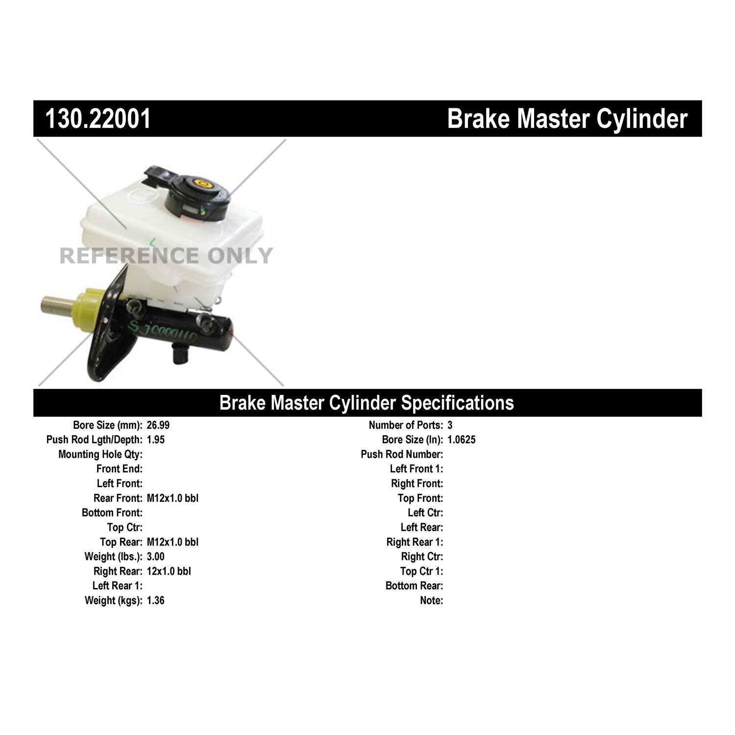 - Centric Premium Brake Master Cylinder