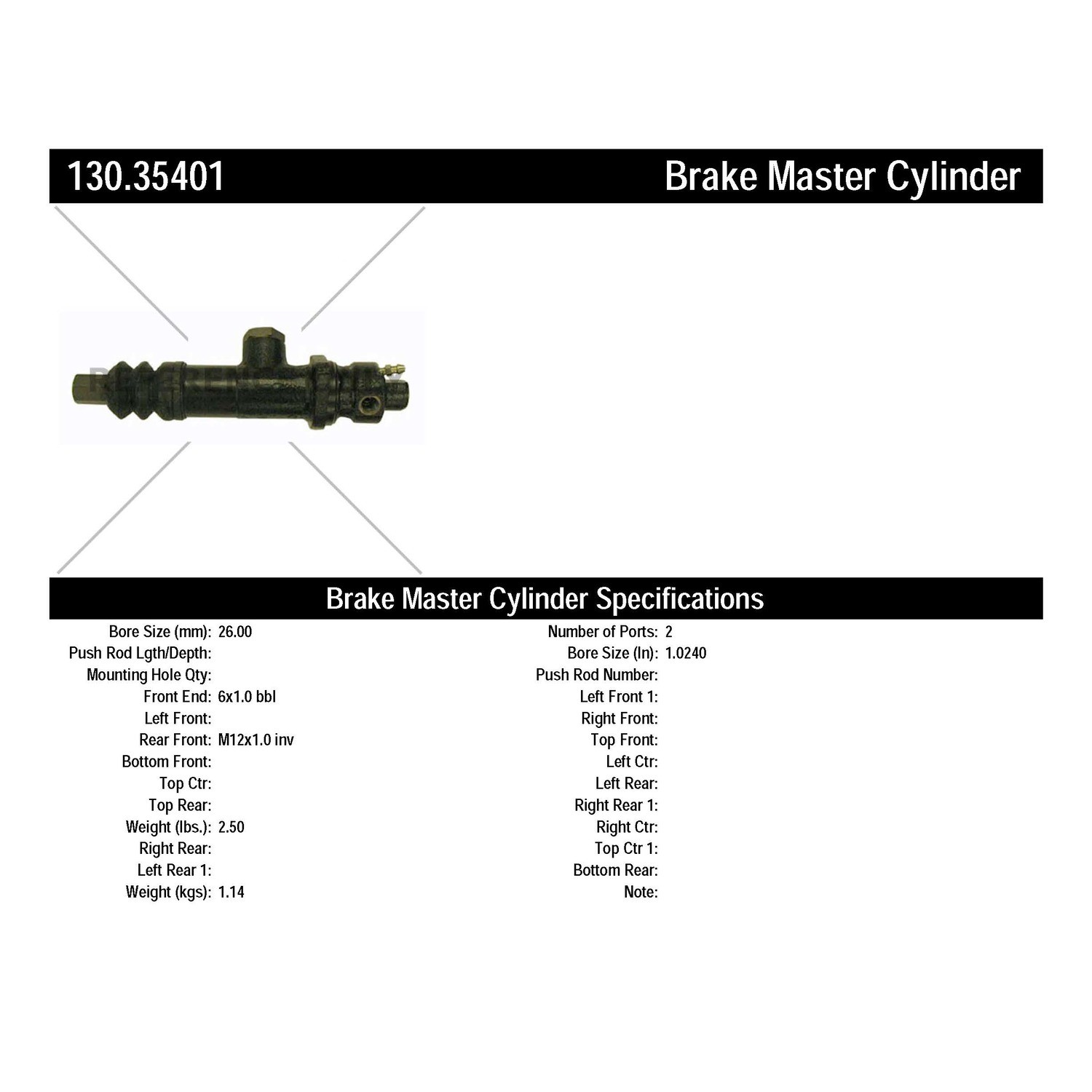 - Centric Premium Brake Master Cylinder