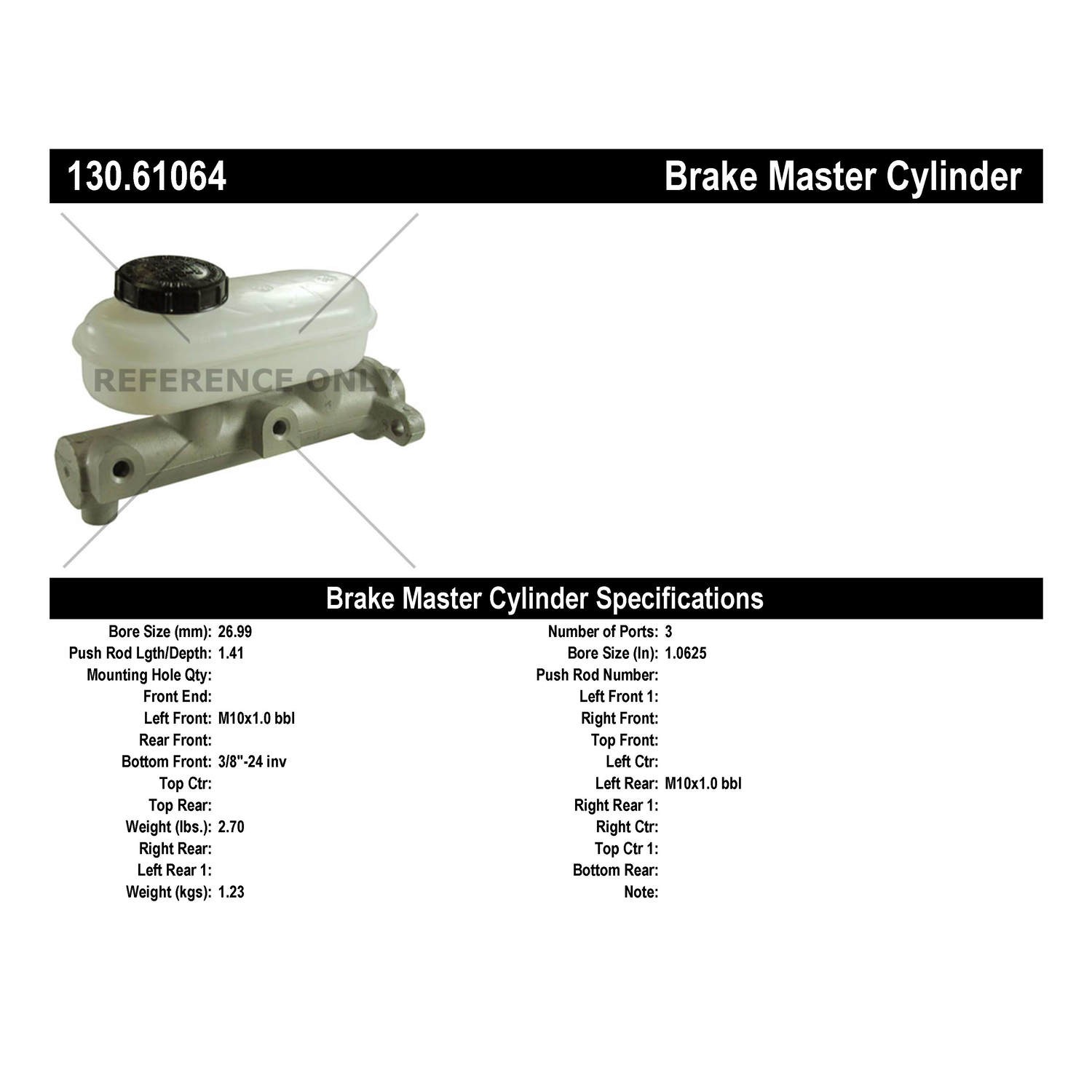 - Centric Premium Brake Master Cylinder