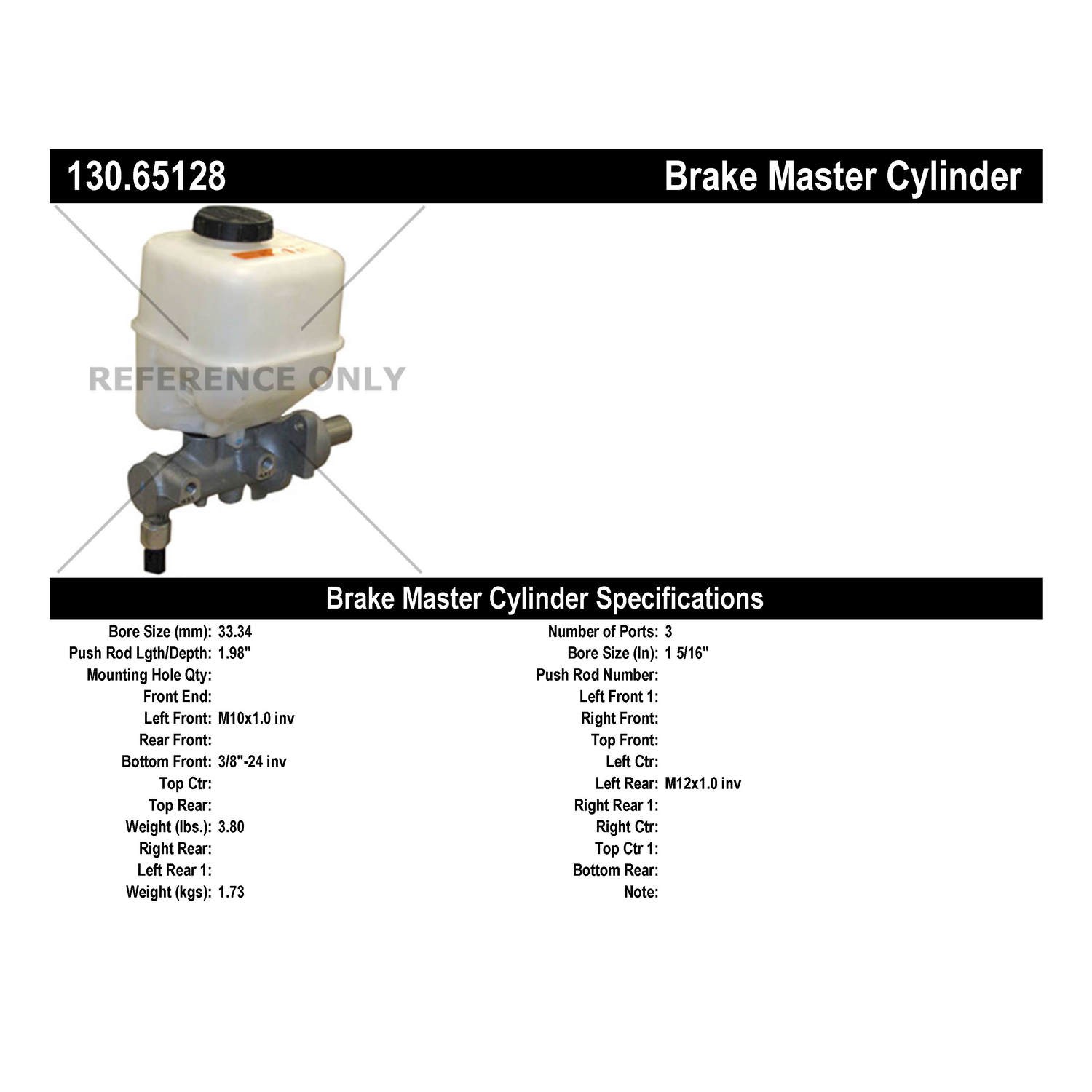 - Centric Premium Brake Master Cylinder
