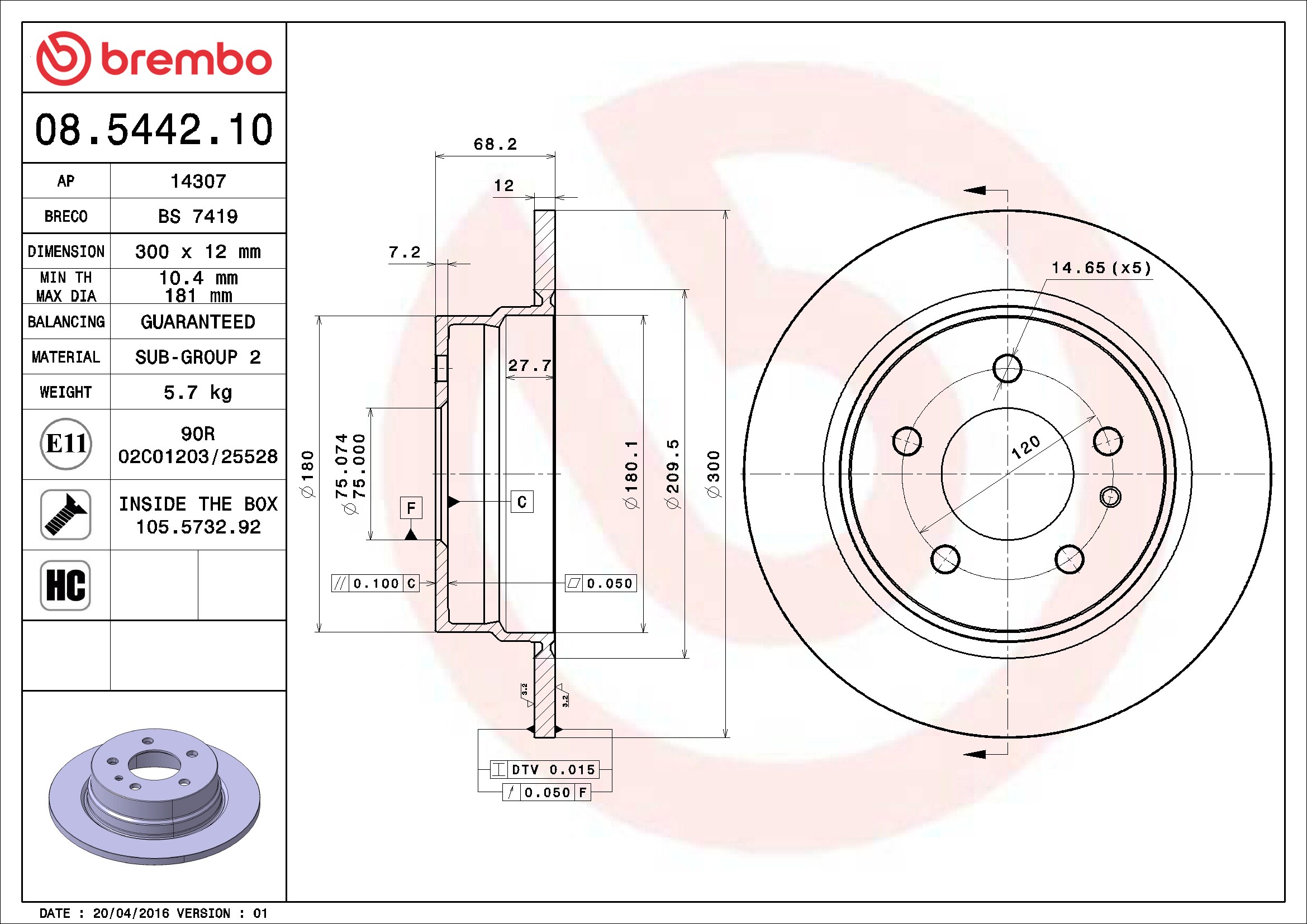 Brembo® 08.5442.10 Disc Brake Rotor