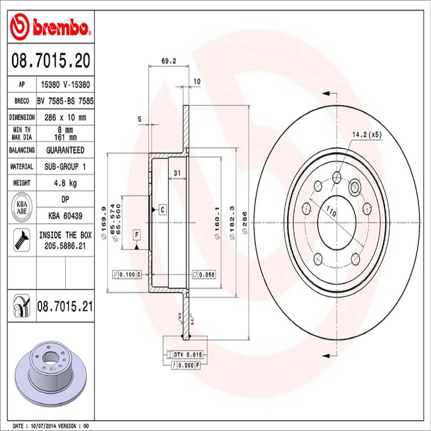 Brembo® 08.7015.21 Disc Brake Rotor