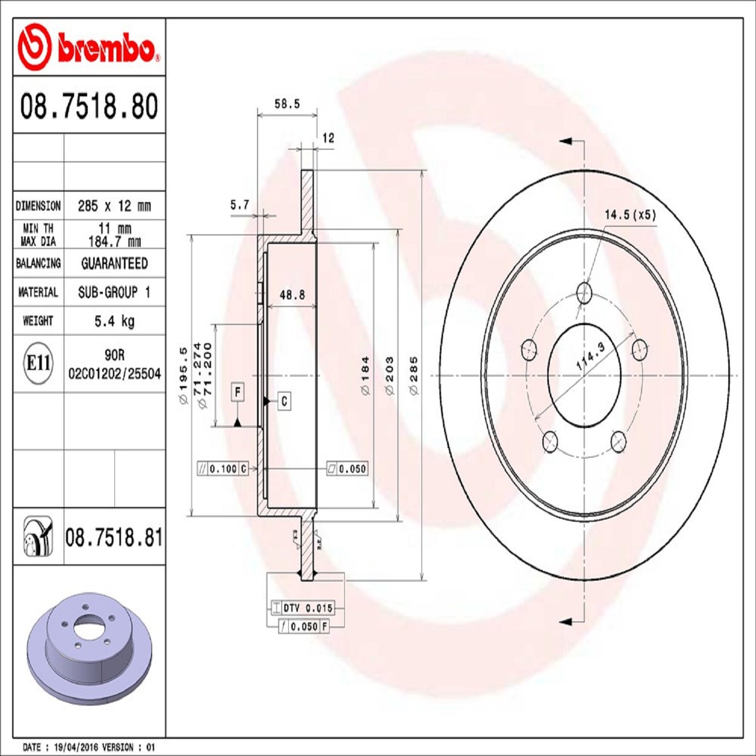 Brembo® 08.7518.81 Disc Brake Rotor