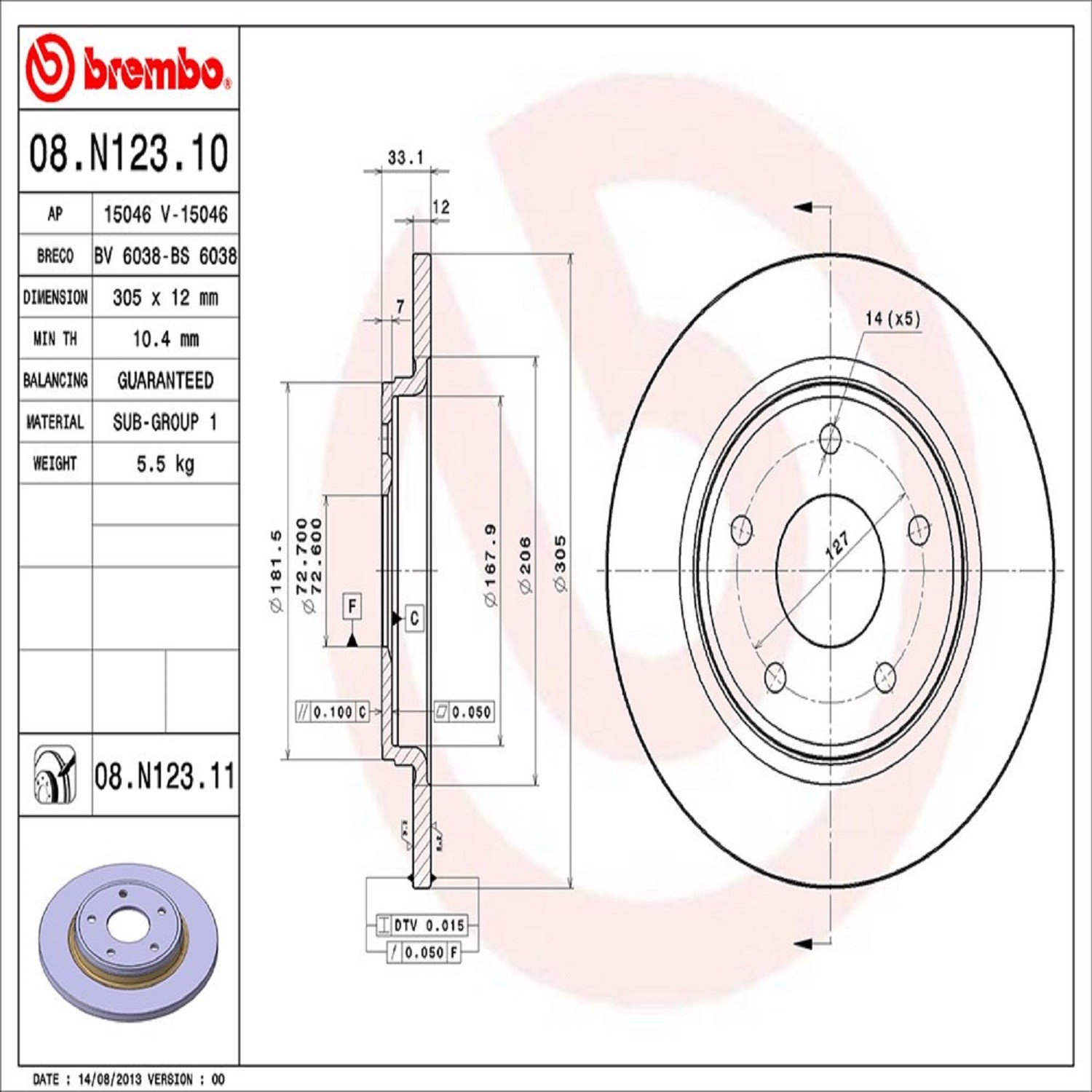 Brembo® 08.N123.11 Disc Brake Rotor