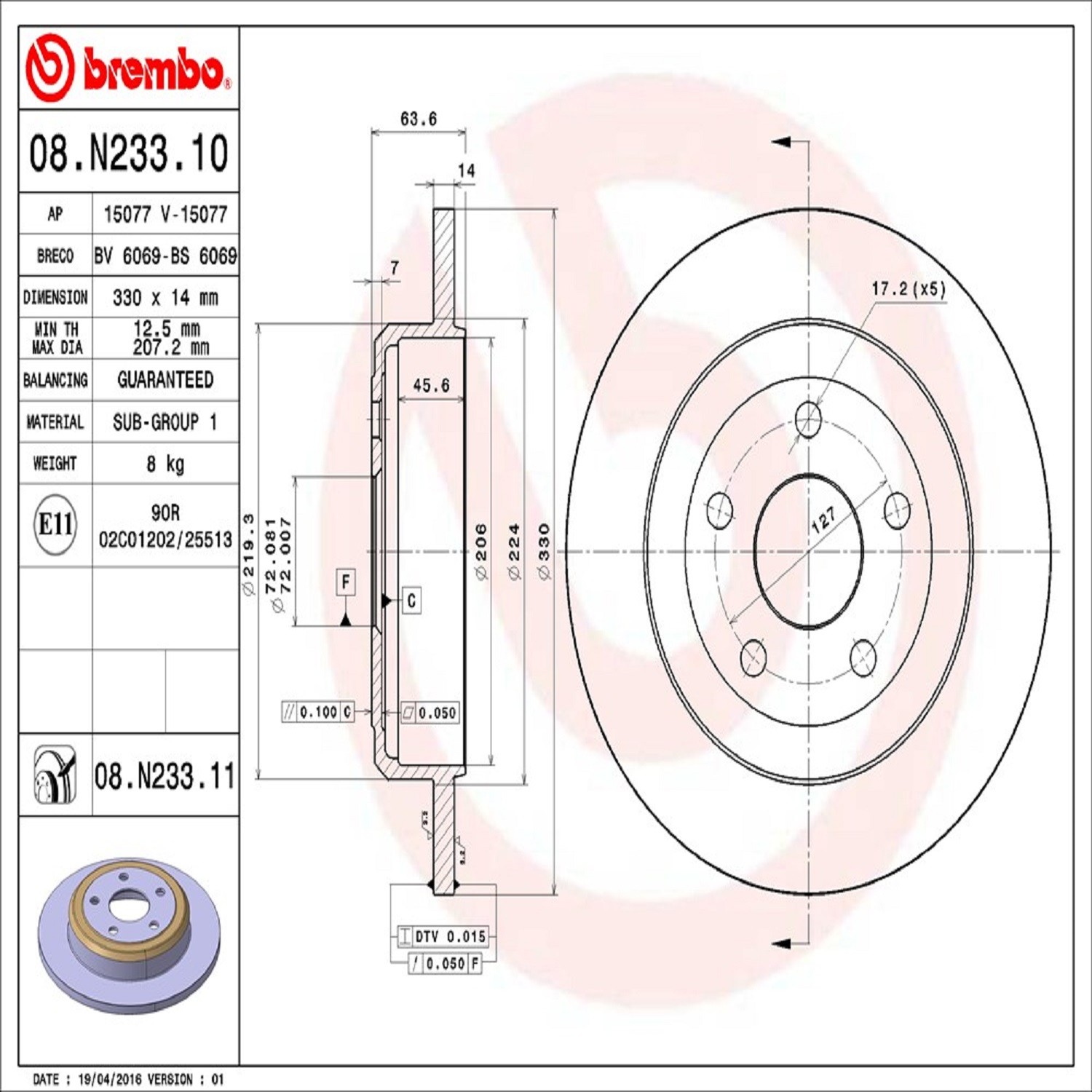 Brembo® 08.N233.11 Disc Brake Rotor