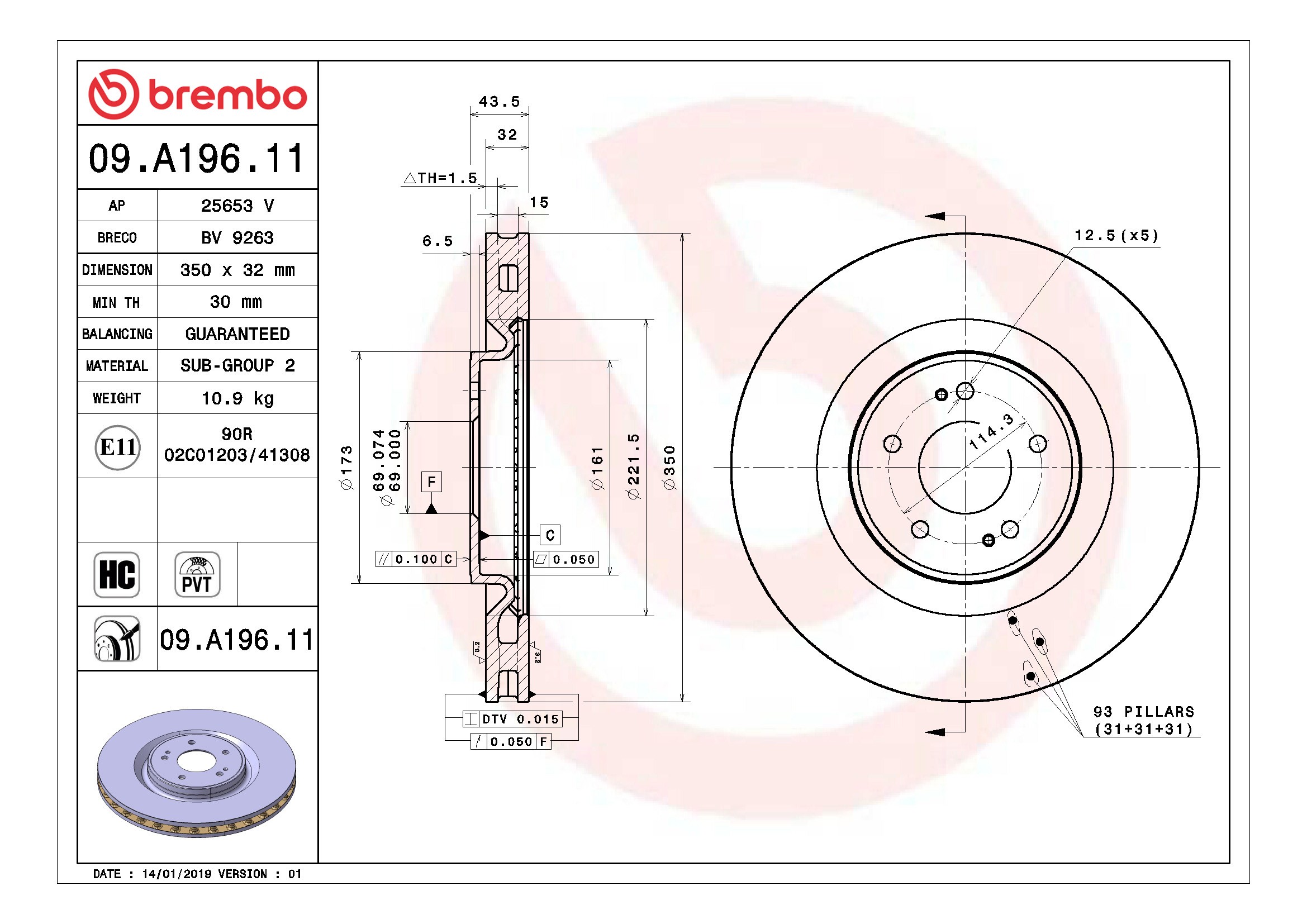 Brembo® 09.A196.11 Disc Brake Rotor