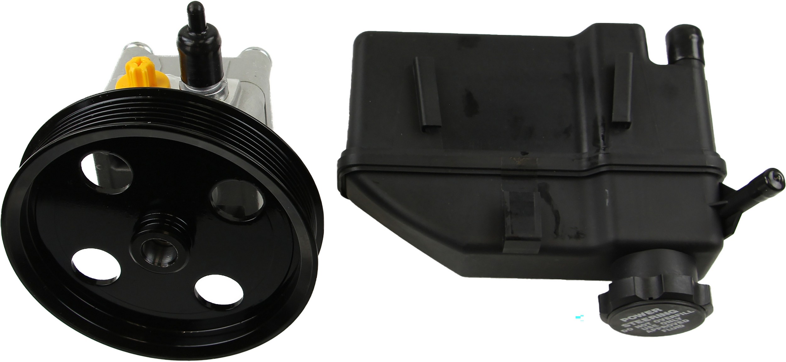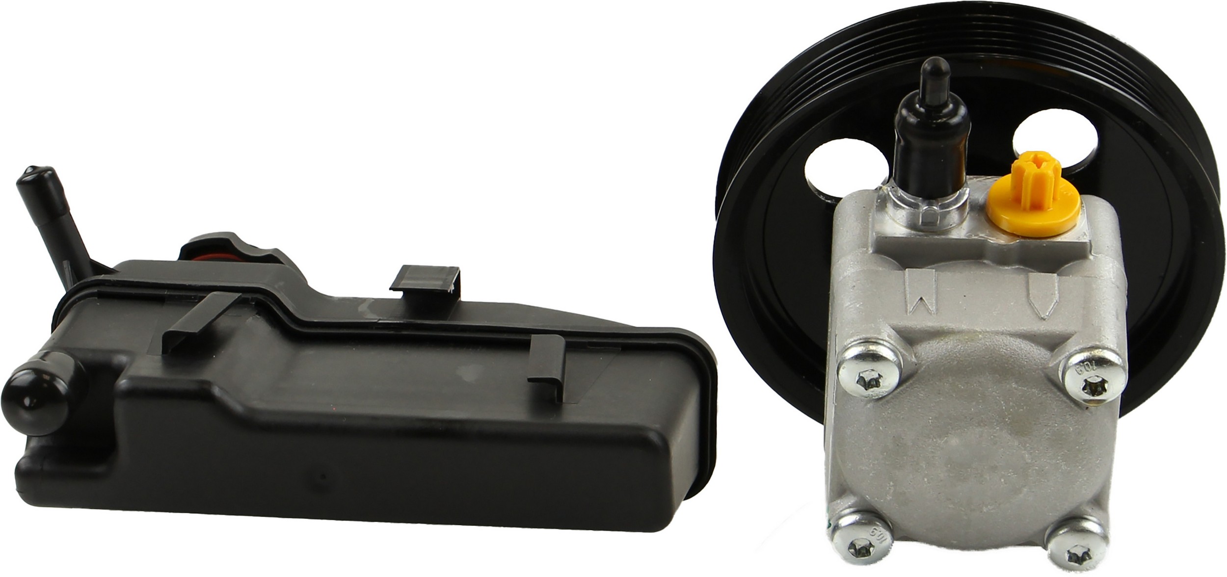- Comes as complete kit with new pump, pulley, return pipe, o-ring, and reservoir.
