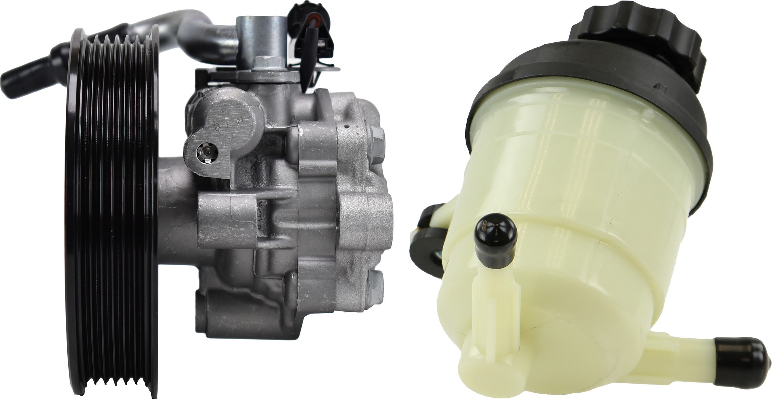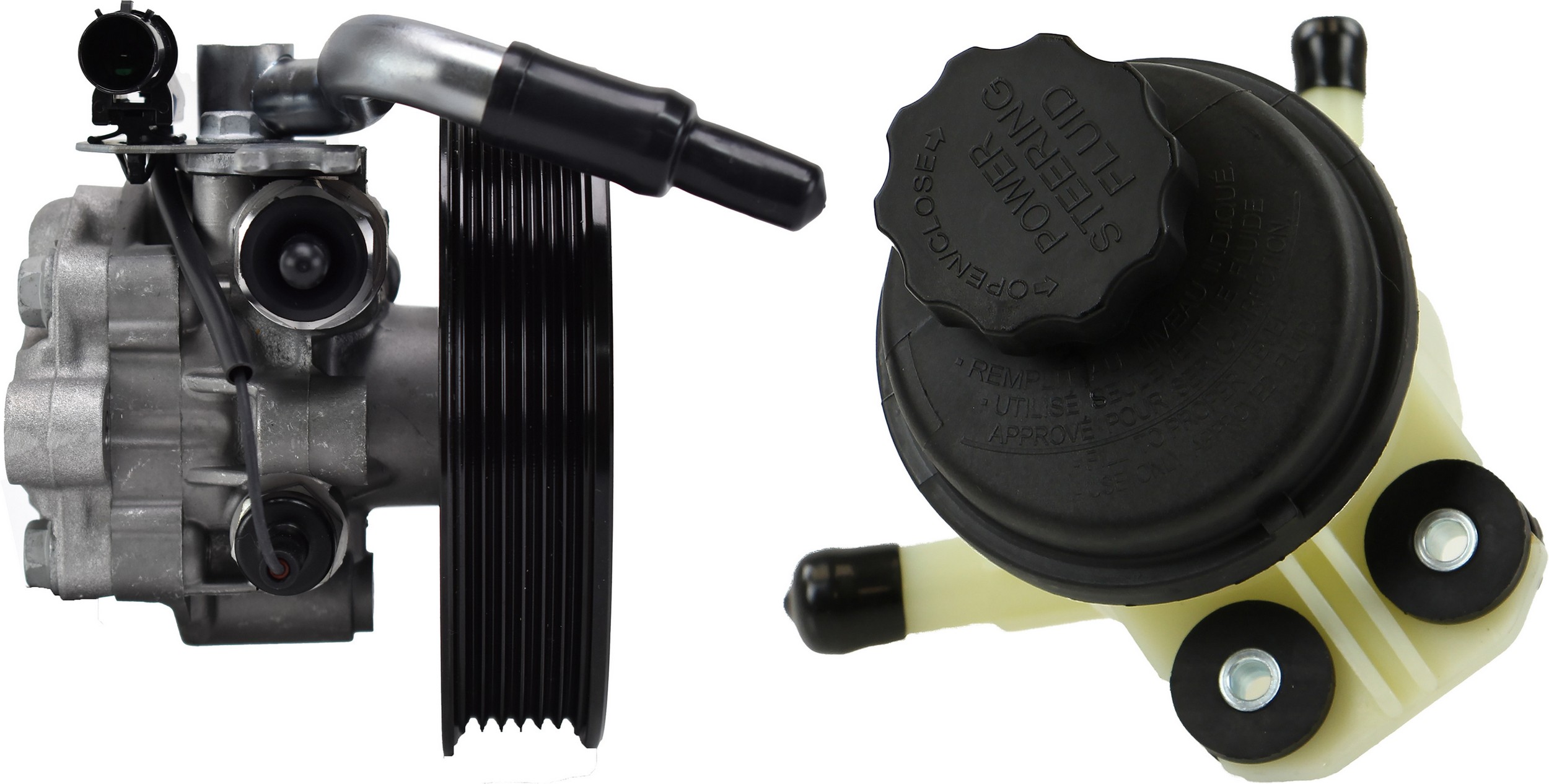 - Comes as complete kit with new pump, pulley, return pipe, o-ring, reservoir and sensor.