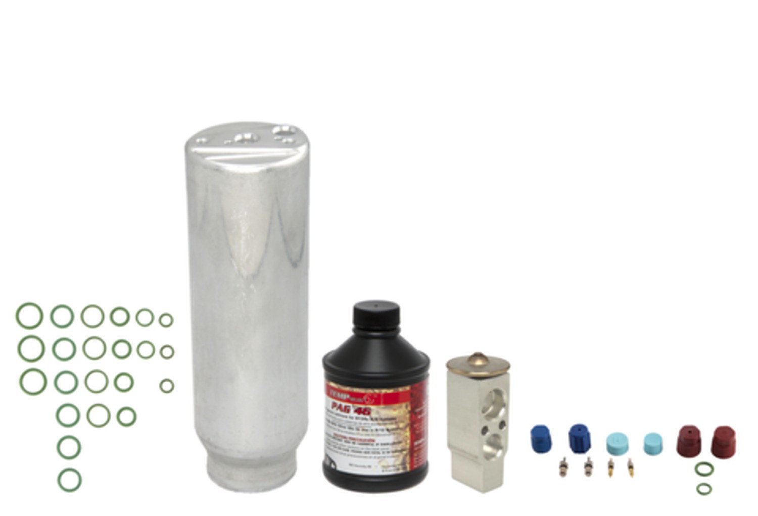 | Kit Includes | Filter drier, expansion valve, compressor oil, o-ring/gasket pack, cap and valve kit |