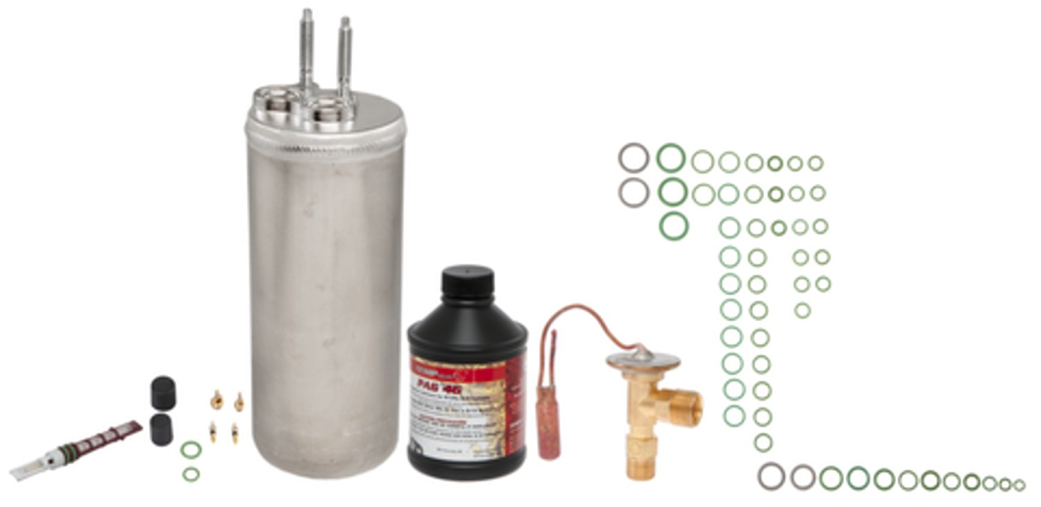 | Kit Includes | Accumulator, orifice tube, rear expansion valve, compressor oil, o-ring/gasket pack, cap and valve kit |