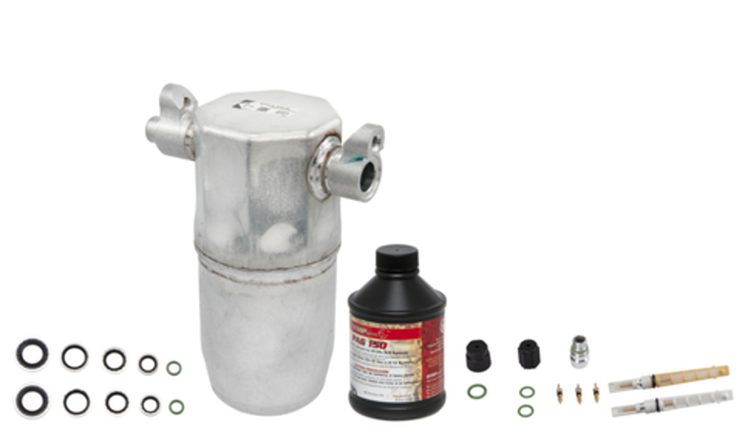 | Kit Includes | Accumulator, orifice tube kit, compressor oil, o-ring/gasket pack, cap and valve kit |