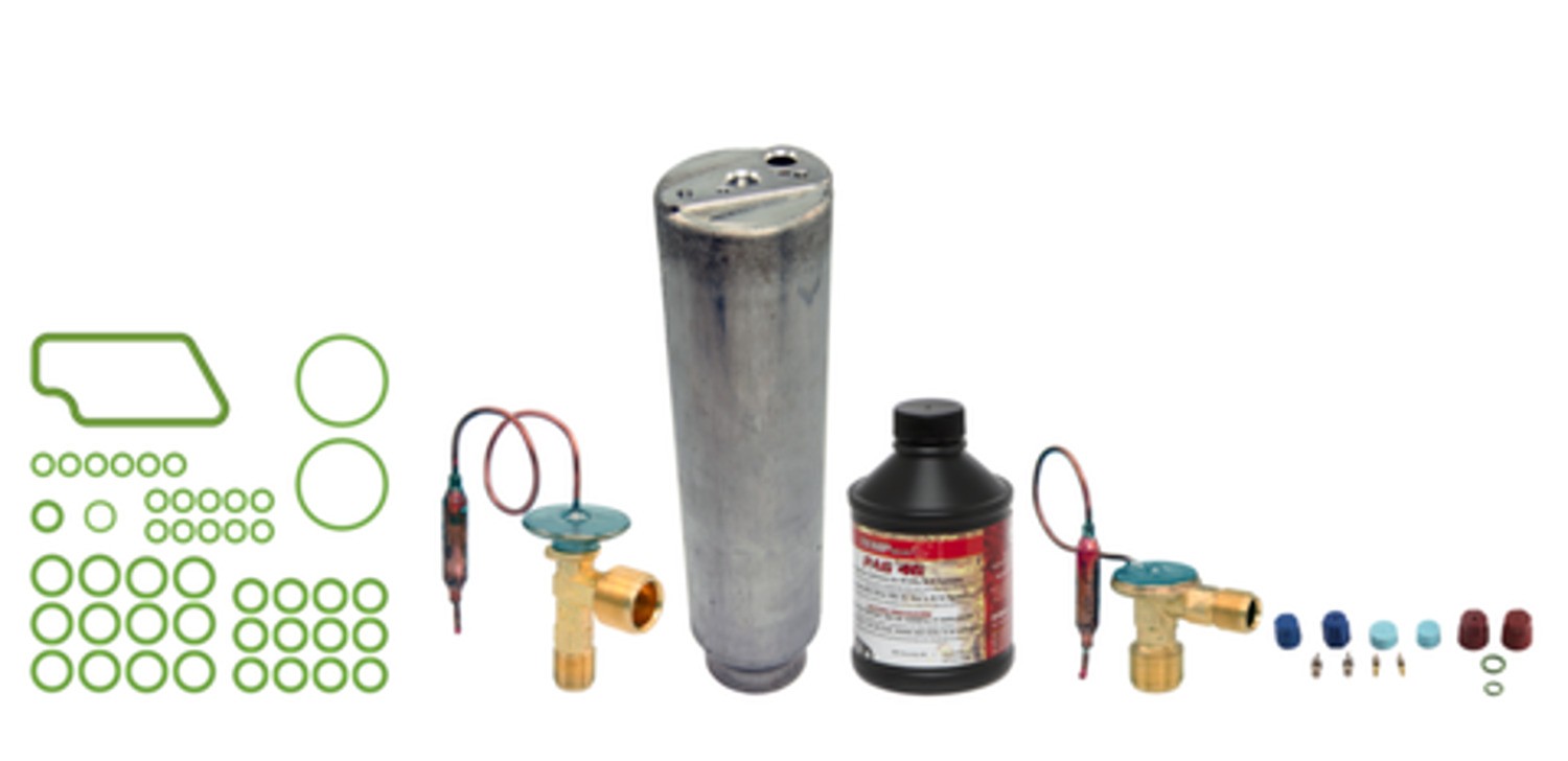 | Kit Includes | Filter drier, expansion valve, rear expansion valve, compressor oil, o-ring/gasket pack, cap and valve kit |
