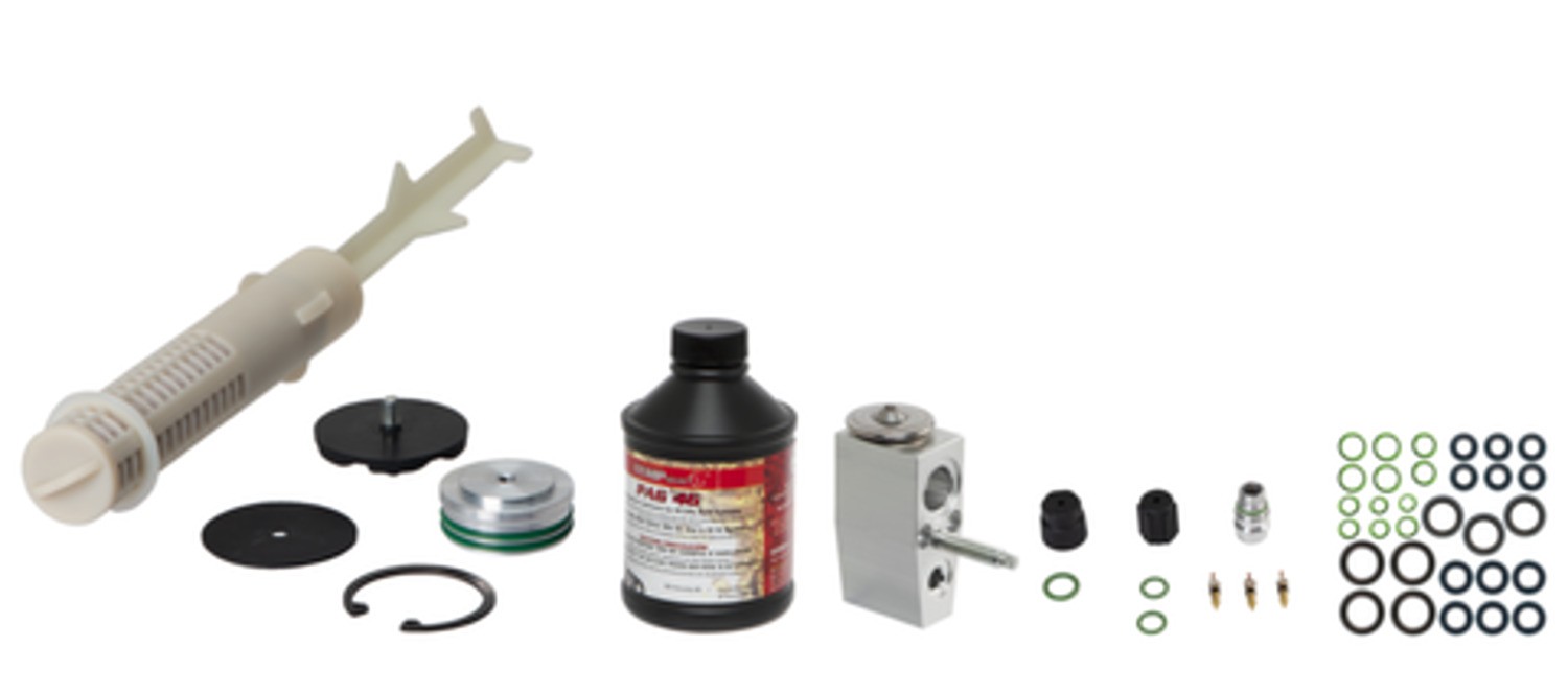 | Kit Includes | Dessicant bag kit, expansion valve, compressor oil, o-ring/gasket pack, cap and valve kit |