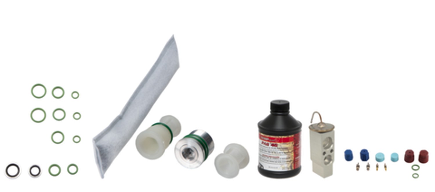 | Kit Includes | Dessicant bag kit, expansion valve, rear expansion valve, compressor oil, o-ring/gasket pack, cap and valve kit |